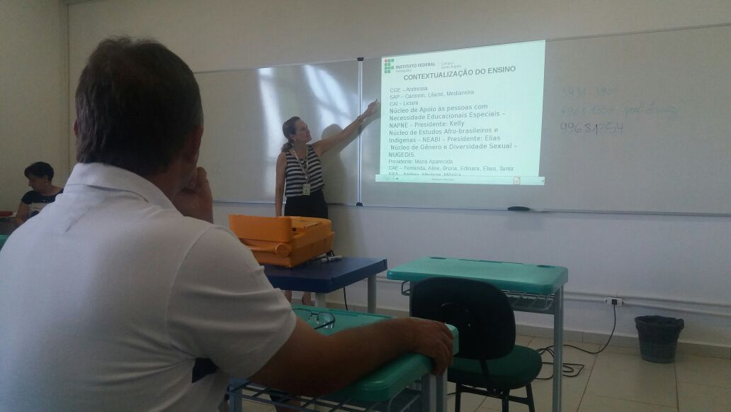 A coordenação da Assistência Estudantil (CAE) e o Setor de Apoio Pedagógico (SAP) conversaram com os pais sobre às normas de convivências, alimentação, auxílios e os espaços do Campus. O Setor de Apoio Pedagógico informou sobre o acompanhamento da aprendizagem realizado pelo setor. Foi esclarecido que a preocupação com a permanência e êxito dos estudantes em nossa instituição é o foco principal, sendo assim, atividades como Recuperação Paralela, Projetos de Ensino que visem a melhoria da aprendizagem são ofertados pelos docentes durante o ano.