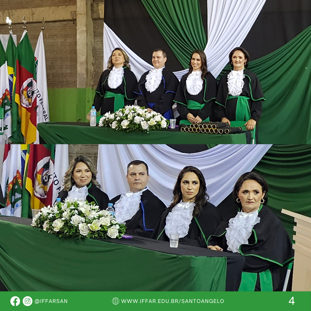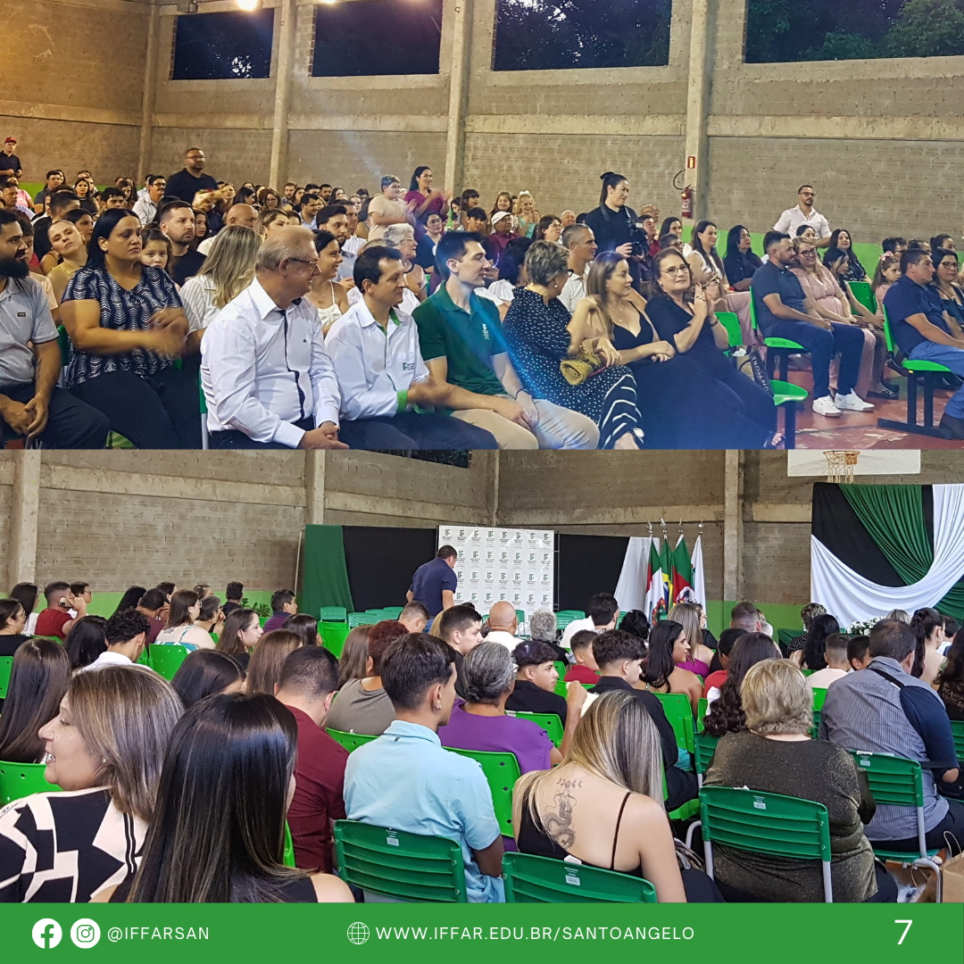 O evento aconteceu no pavilhão da quadra de esportes coberta e contou com a presença da equipe diretiva, da coordenação de curso, de servidores homenageados, além de outros membros do corpo docente e técnico-administrativo em educação do IFFar - Campus Santo Ângelo (IFFar-SAn). Pais, amigos e familiares dos formandos também estiveram presentes, prestigiando esse momento especial.