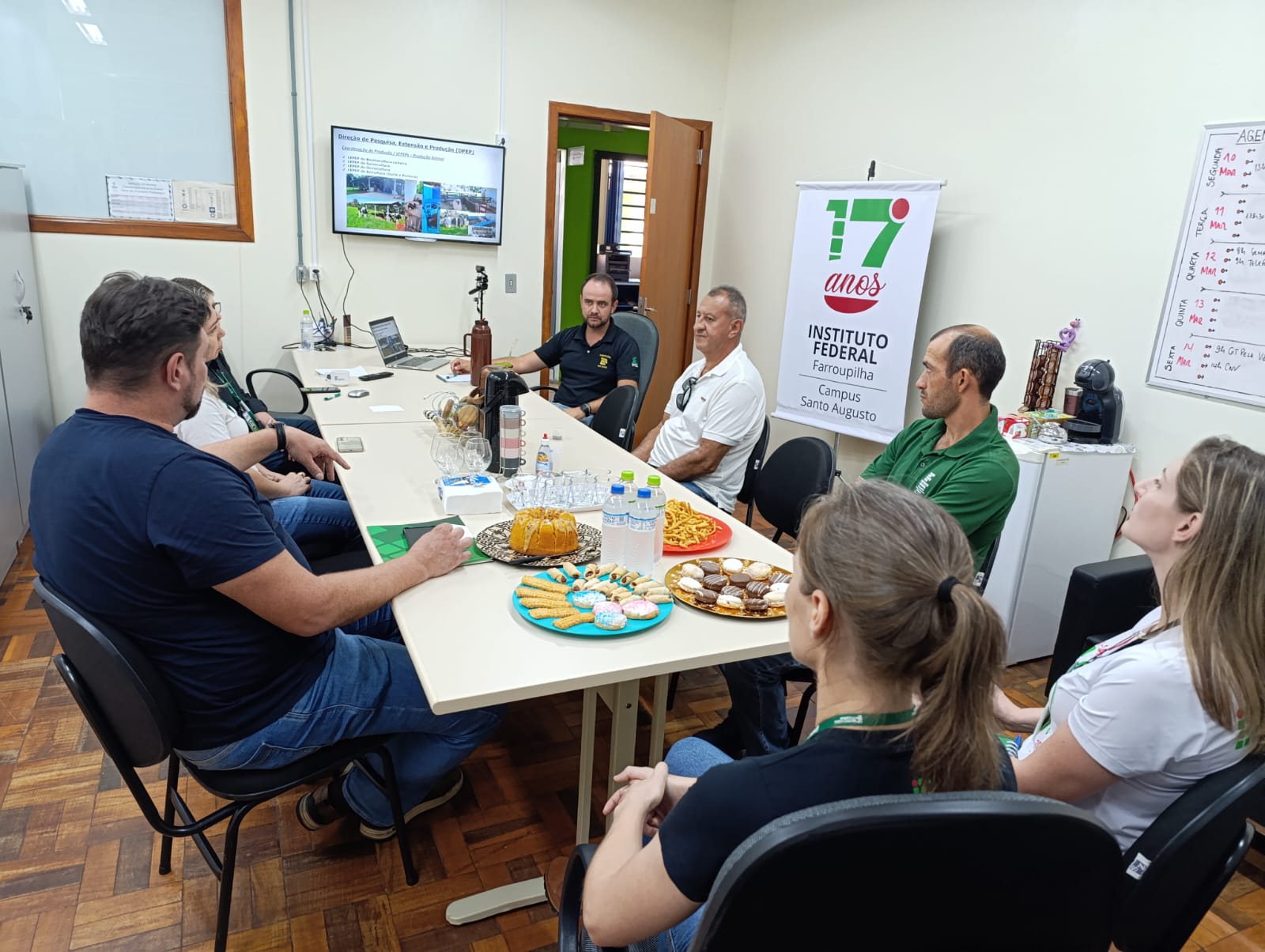 Os visitantes foram recebidos no Gabinete da Direção, pela Diretora Geral Márcia Fink, pelo Diretor de Pesquisa, Extensão e Produção, Ricardo Paraginski, do Coordenador de Produção, Jarbas Melo, da Coordenadora do Curso Técnico em Agropecuária, Patrícia Mombach, e da professora Thamara Luísa Staudt Schneider. Na ocasião, de forma sucinta foram apresentados os Laboratórios de Pesquisa Extensão e Produção - LEPEPs da instituição e também o que atualmente é produzido.