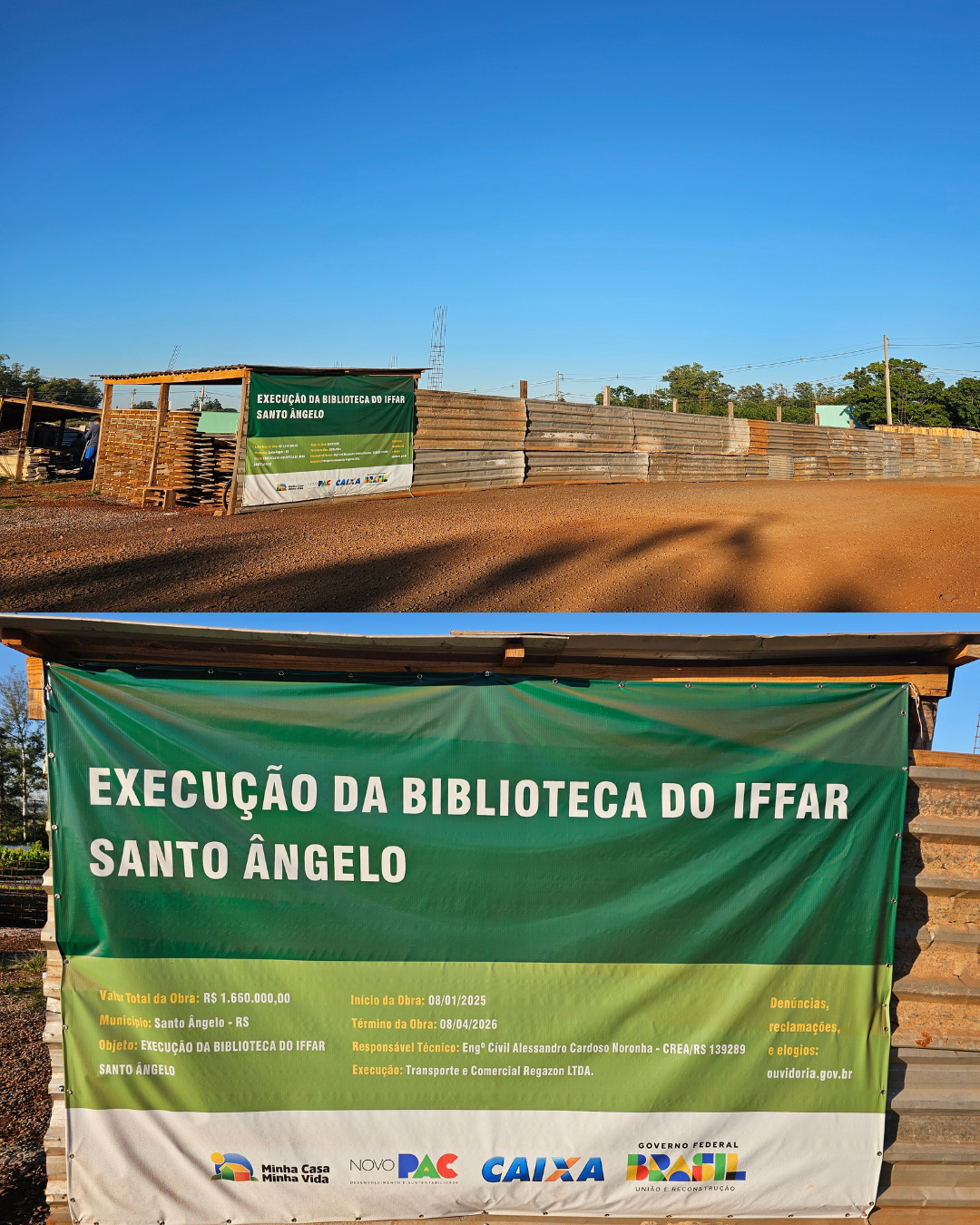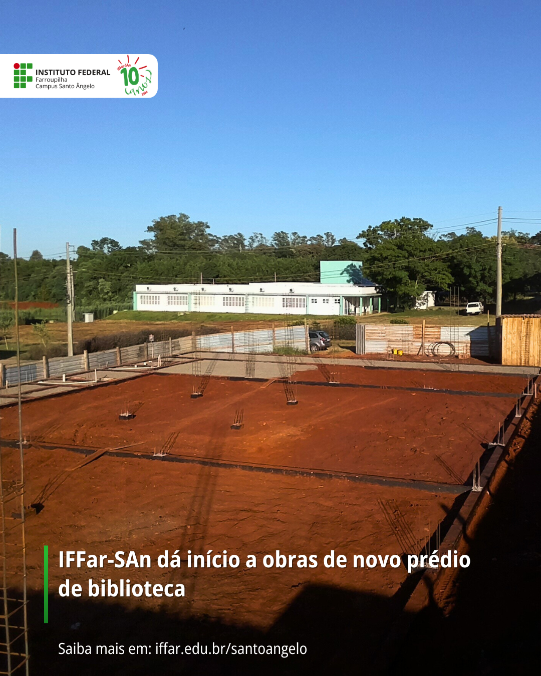 A construção da nova biblioteca do Instituto Federal Farroupilha (IFFar) – Campus Santo Ângelo, está em ritmo acelerado, sendo que já atingiu 19,81% de sua execução de acordo com a terceira medição realizada. A obra, que teve início em janeiro de 2025, está prevista para ser concluída em um prazo de 15 meses.