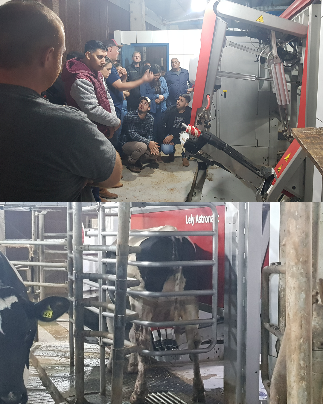 Durante a visita, os estudantes puderam conhecer de perto a estrutura da fazenda, os sistemas de gestão aplicados à produção leiteira e os desafios e benefícios da adoção de tecnologias no campo. A turma foi recepcionada pelo senhor Fábio Cassel, que compartilhou com os alunos sua experiência na administração da propriedade e nos processos de inovação.