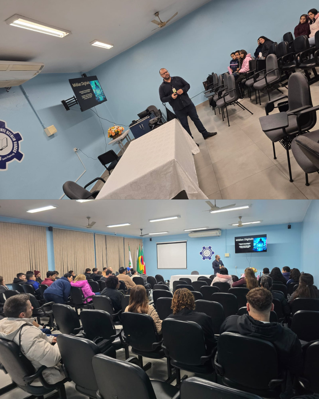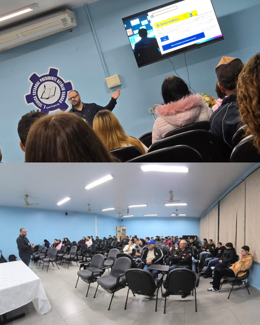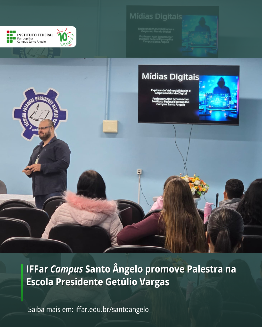 No dia 27/05/2025, foi realizada na Escola Presidente Getúlio Vargas uma palestra sobre Mídias Digitais, ministrada pelo professor Alan Schumacher, direcionada às turmas do curso noturno. A atividade teve como objetivo conscientizar os alunos sobre os riscos no ambiente digital e as formas de proteção contra golpes virtuais.