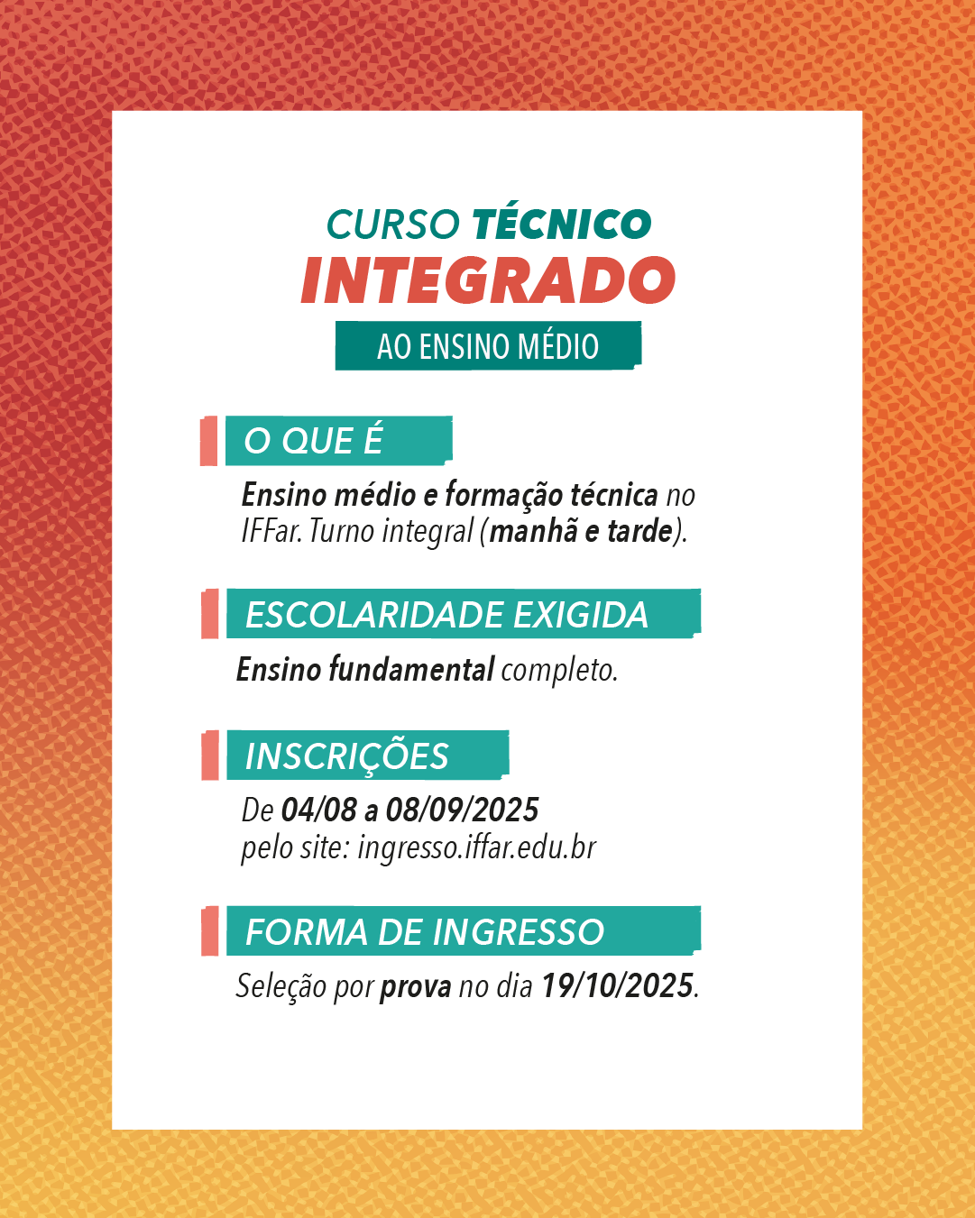 Fique de olho nas datas de inscrição e saiba mais em: https://ingresso.iffar.edu.br