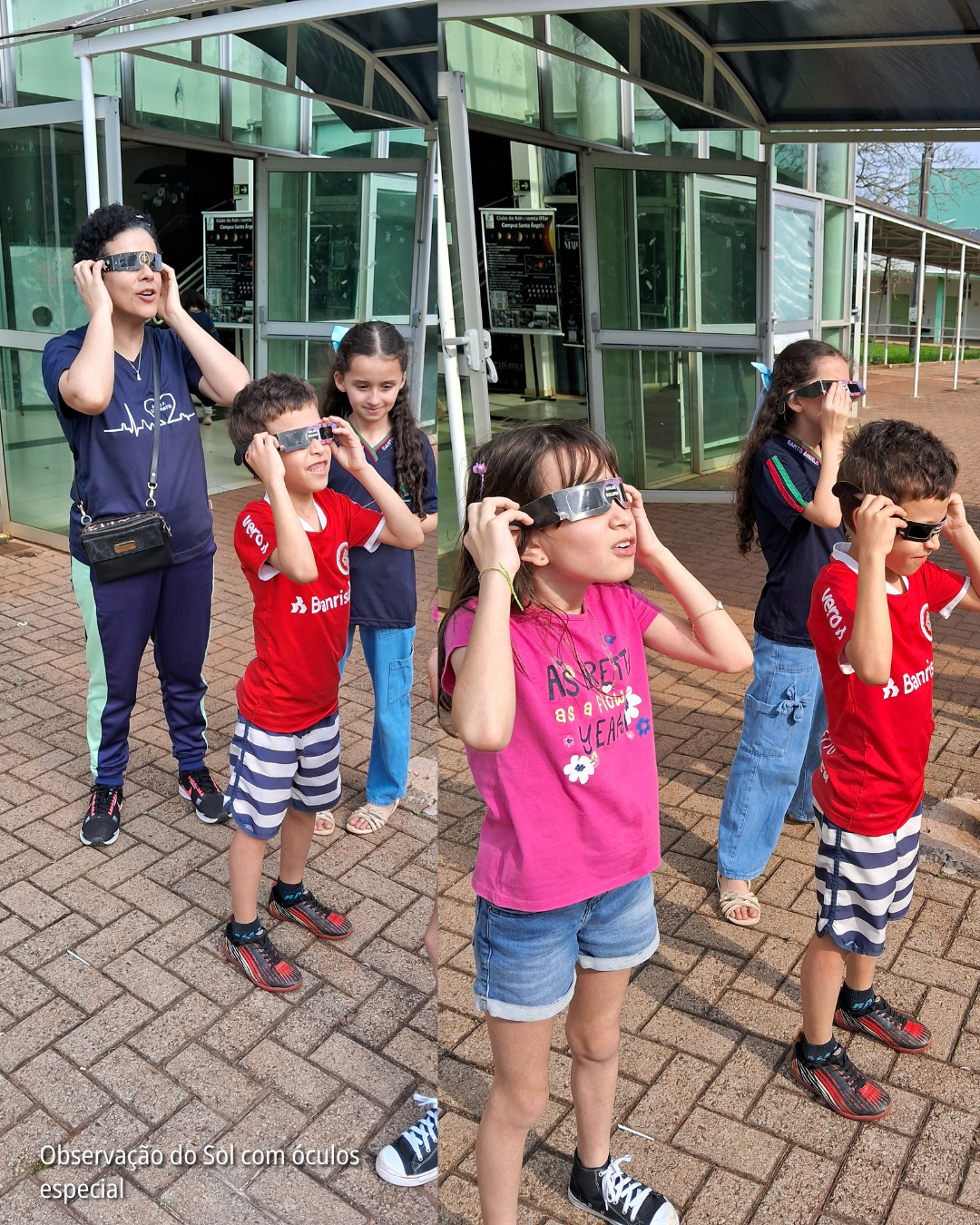 Também interagiram com o Óculos de Realidade Virtual e foram à "caça aos mentioritos" com o detector de metais. O astro Sol apareceu timidamente por entre as nuvens, o que possibilitou sua observação com os óculos especiais de eclipse. E mesmo com a Lua escondida atrás das nuvens, as crianças usaram o telescópio para observar as árvores e flores.