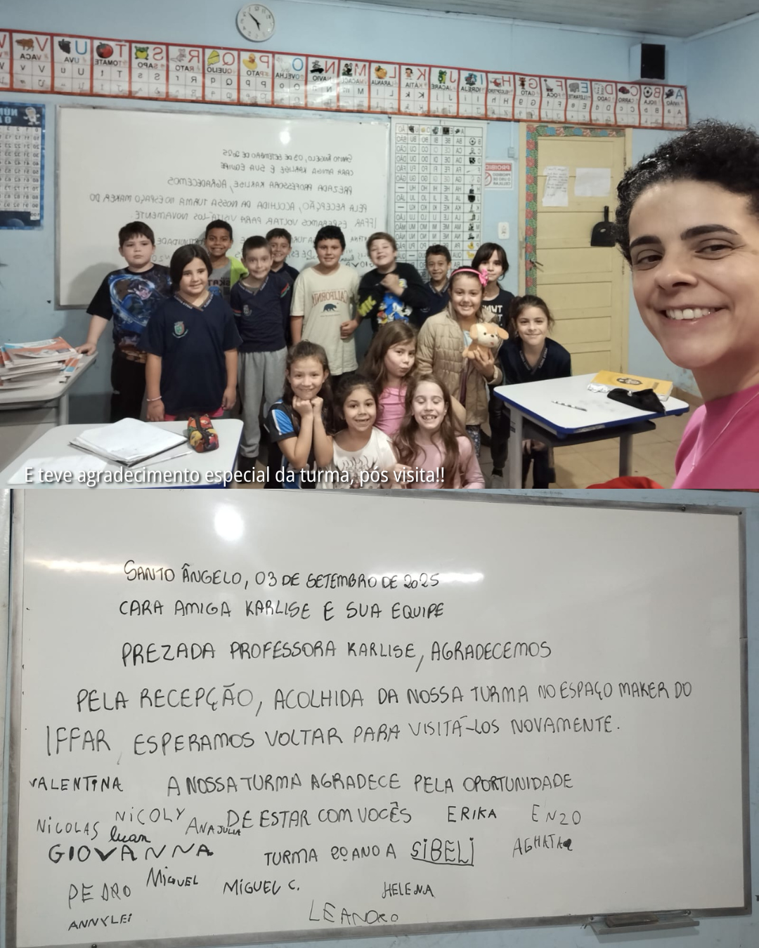 A visita, mediada pela professora Letícia Rieger Duarte, Coordenadora Pedagógica da escola e solicitada pela professora Ana Paula da Rosa Ribeiro, regente da turma, teve como principal objetivo conhecer o Laboratório IF Maker e o Projeto de Extensão do Clube de Astronomia.