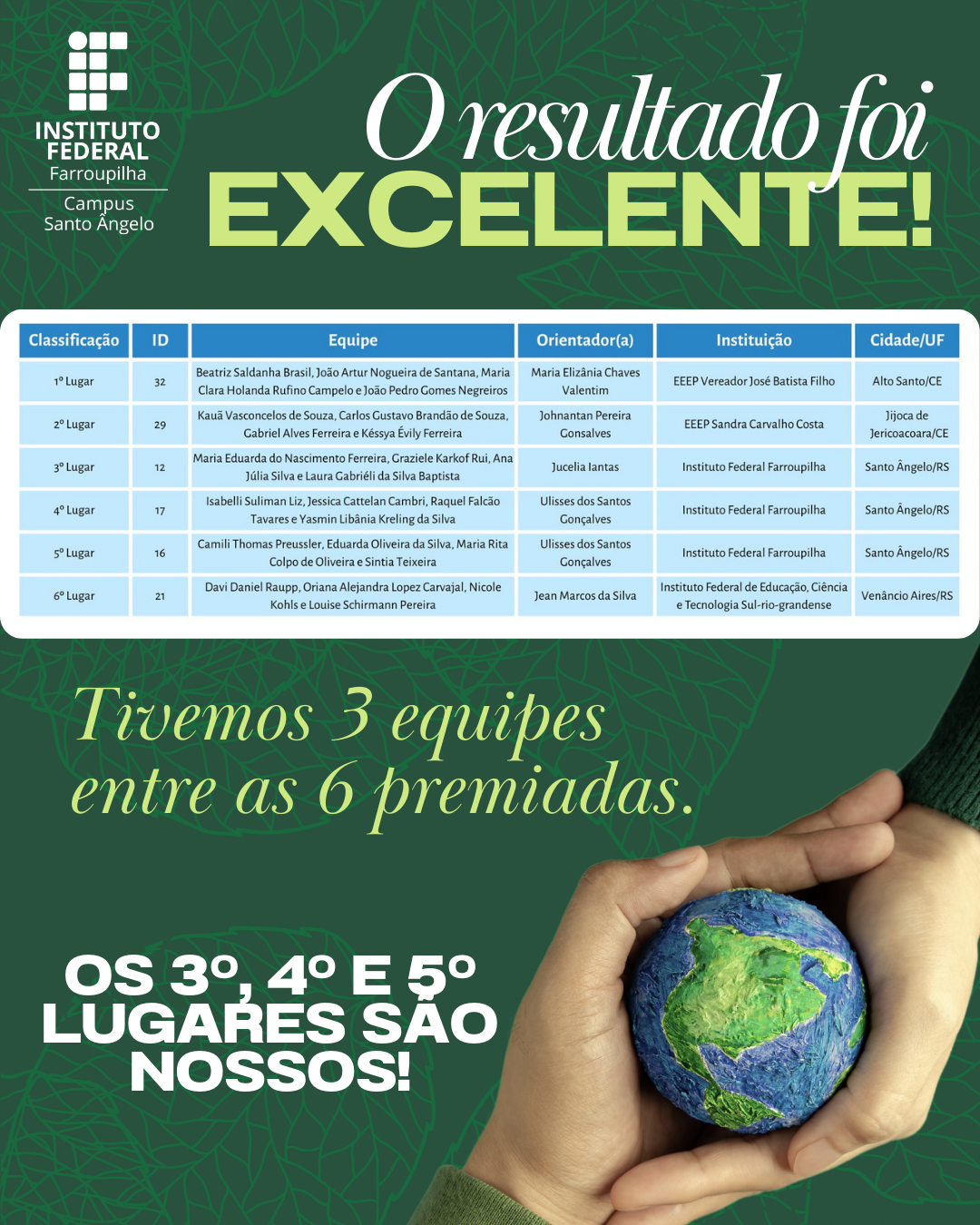 O IFFar-SAn parabeniza todos os estudantes, professores e equipes envolvidas pela dedicação, empenho e excelentes resultados obtidos.