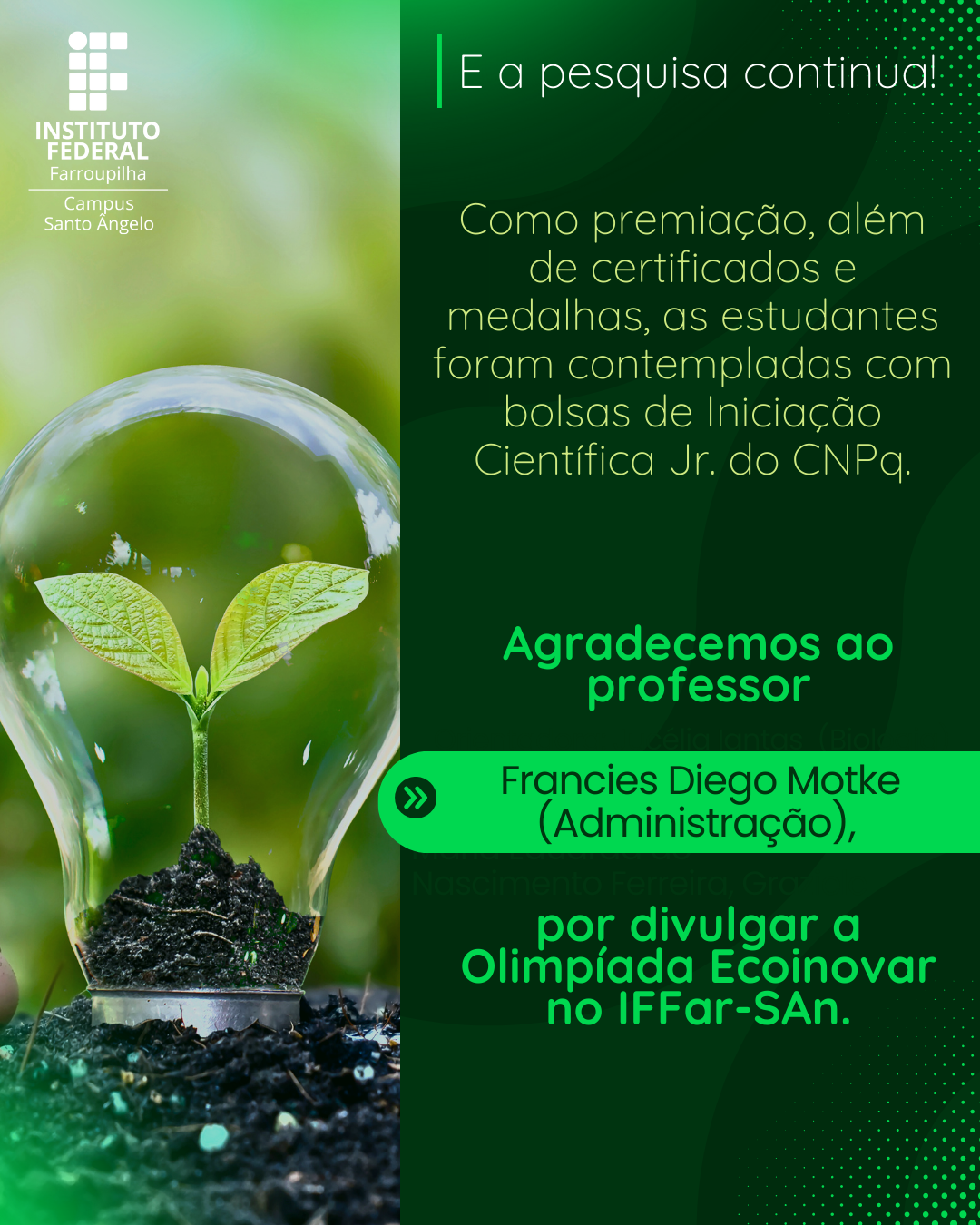 A participação e os resultados alcançados reforçam o papel do IFFar – Campus Santo Ângelo no incentivo à pesquisa, à inovação e à formação integral dos estudantes, alinhando ensino, ciência e compromisso social.