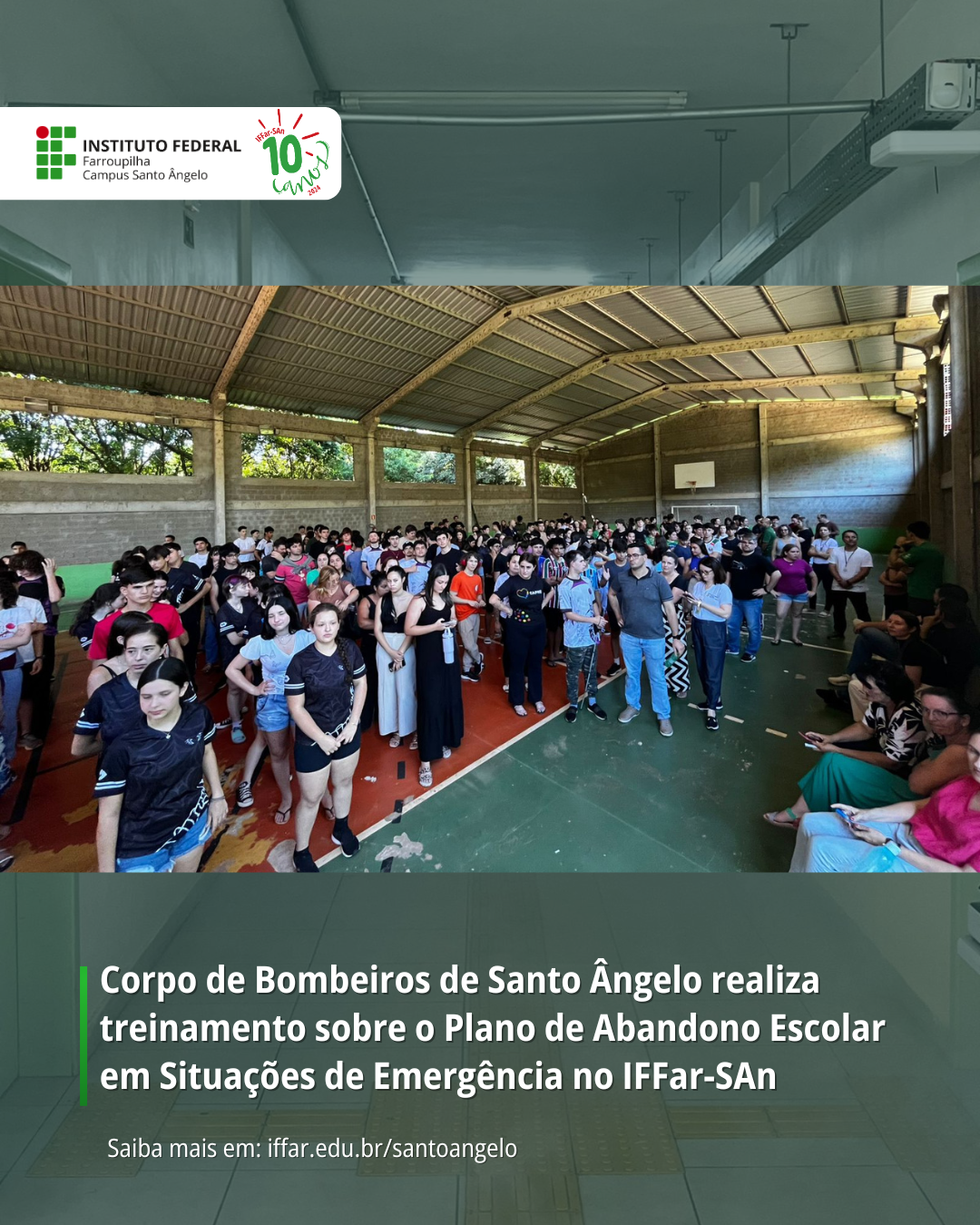 No dia 04 de dezembro, o Corpo de Bombeiros de Santo Ângelo realizou um treinamento sobre o Plano de Abandono Escolar em Situações de Emergência no IFFar – Campus Santo Ângelo.