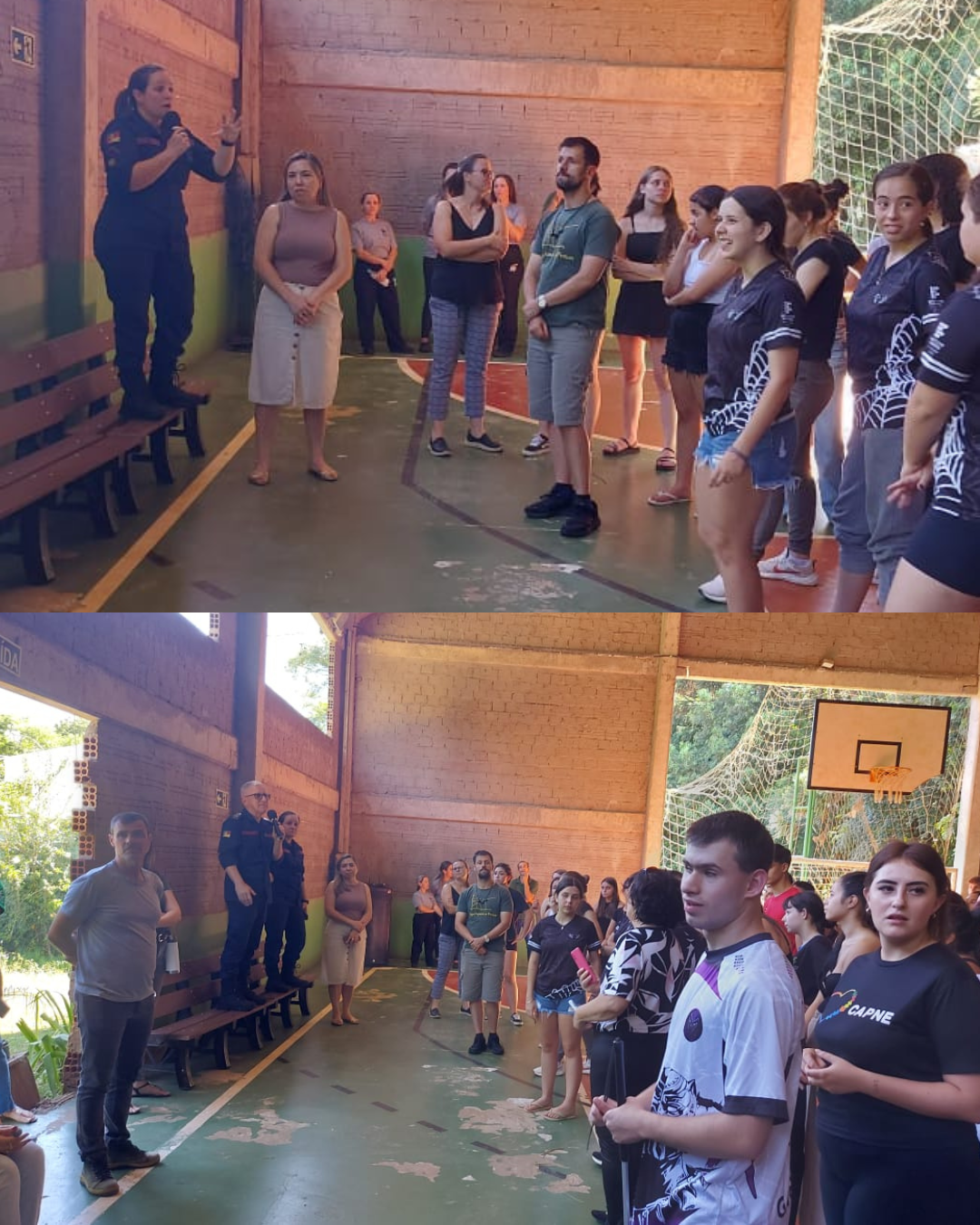 - Na sequência – Simulação prática de evacuação, conforme orientação do Corpo de Bombeiros.