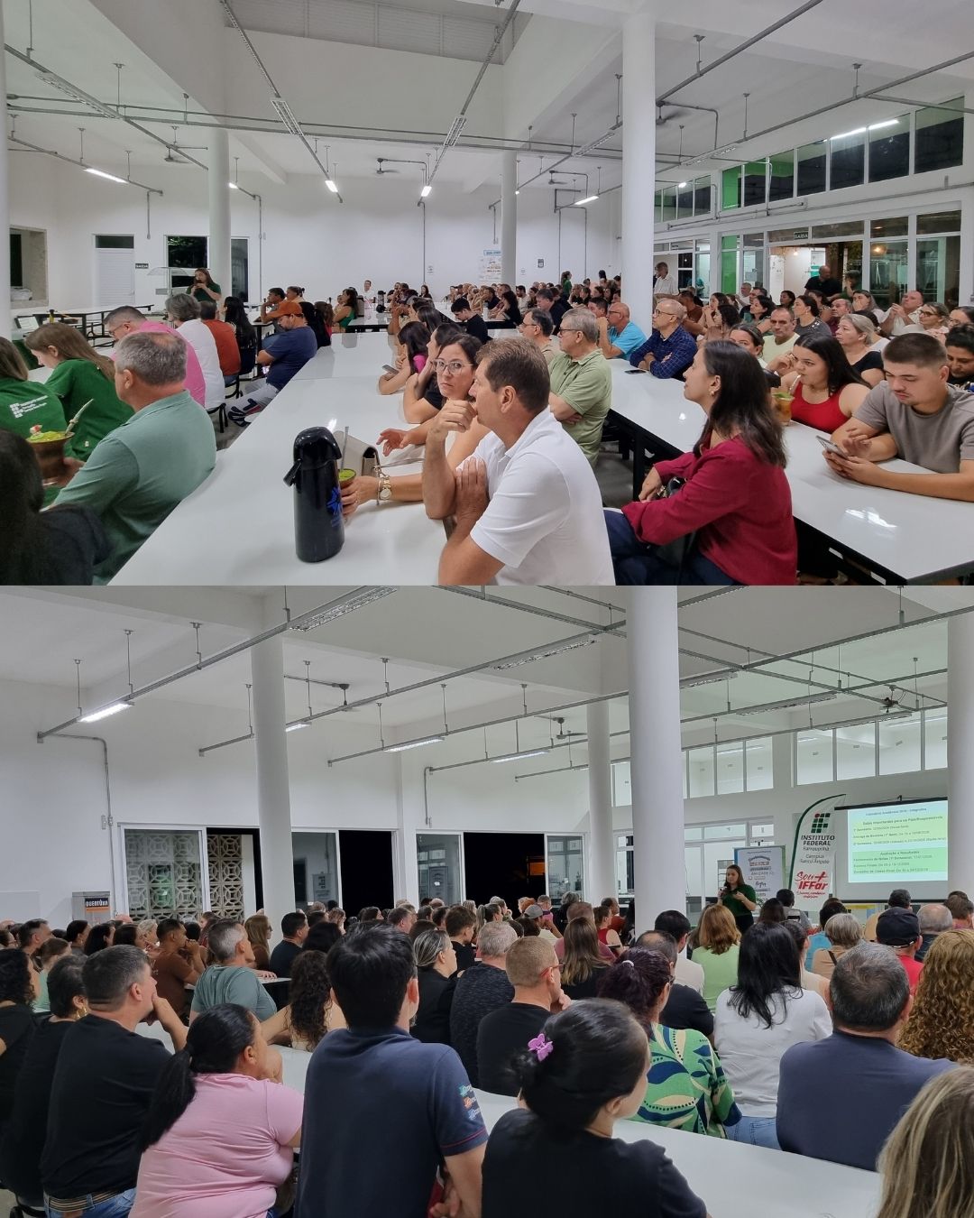 O encontro ocorreu às 19h30, no Centro de Convivência/Refeitório do campus, reunindo familiares, estudantes e representantes da equipe diretiva e de ensino da instituição.