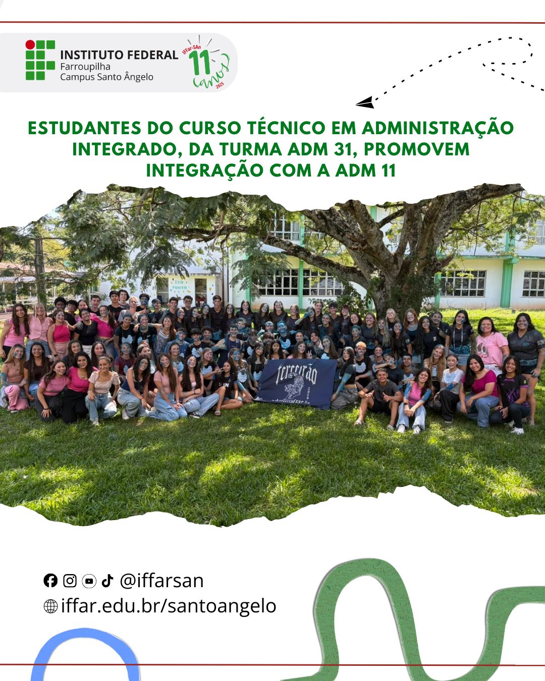 Estudantes veteranos do Curso Técnico em Administração Integrado ao Ensino Médio (turma ADM31) do Instituto Federal Farroupilha – Campus Santo Ângelo (IFFar-SAn) promoveram um momento especial de integração com os alunos do 1º ano, da turma ADM11.