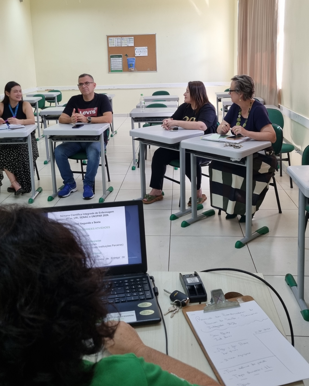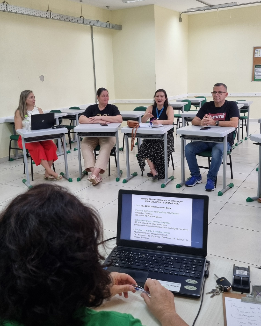 O encontro reuniu representantes do Instituto Federal Farroupilha campus Santo Ângelo (IFFar-SAn), além de instituições parceiras como URI, SENAC e UNOPAR, fortalecendo a construção coletiva do evento e a integração entre as instituições de ensino.