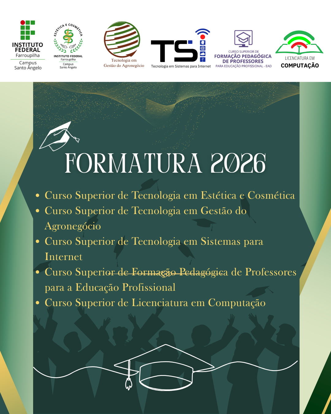 O IFFar – campus Santo Ângelo parabeniza todos os formandos e deseja sucesso em suas trajetórias.