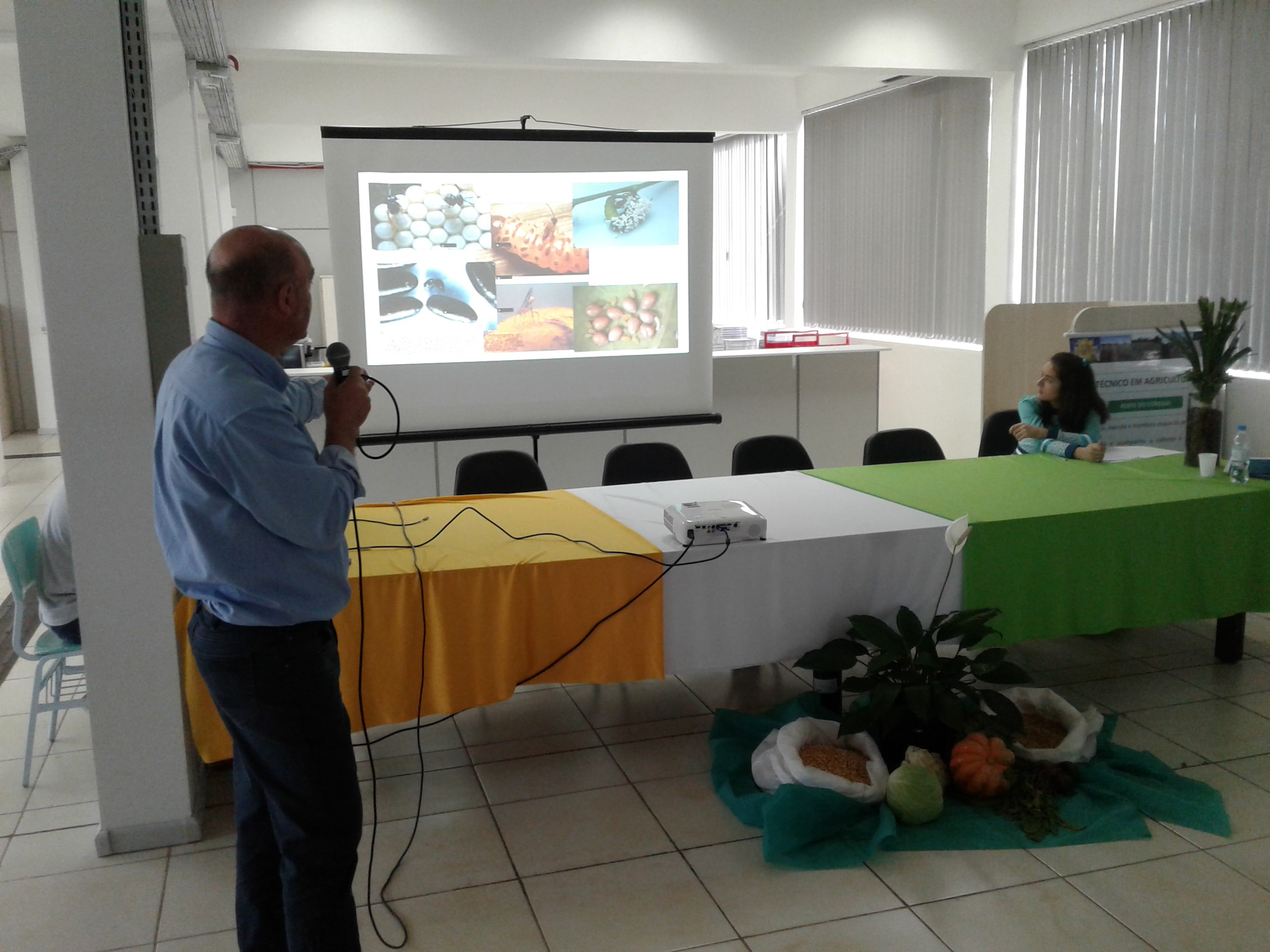 No dia 14/09 tivemos palestras com várias temáticas. A primeira foi proferida pelo Engº Agrônomo Cesar João Bianchini (AGROBIANCHINI), que falou sobre “Produtos biológicos na agricultura”, enfocando na importância dos inimigos naturais bem como nos produtos já disponíveis para o controle biológico de doenças e pragas em culturas agrícolas.