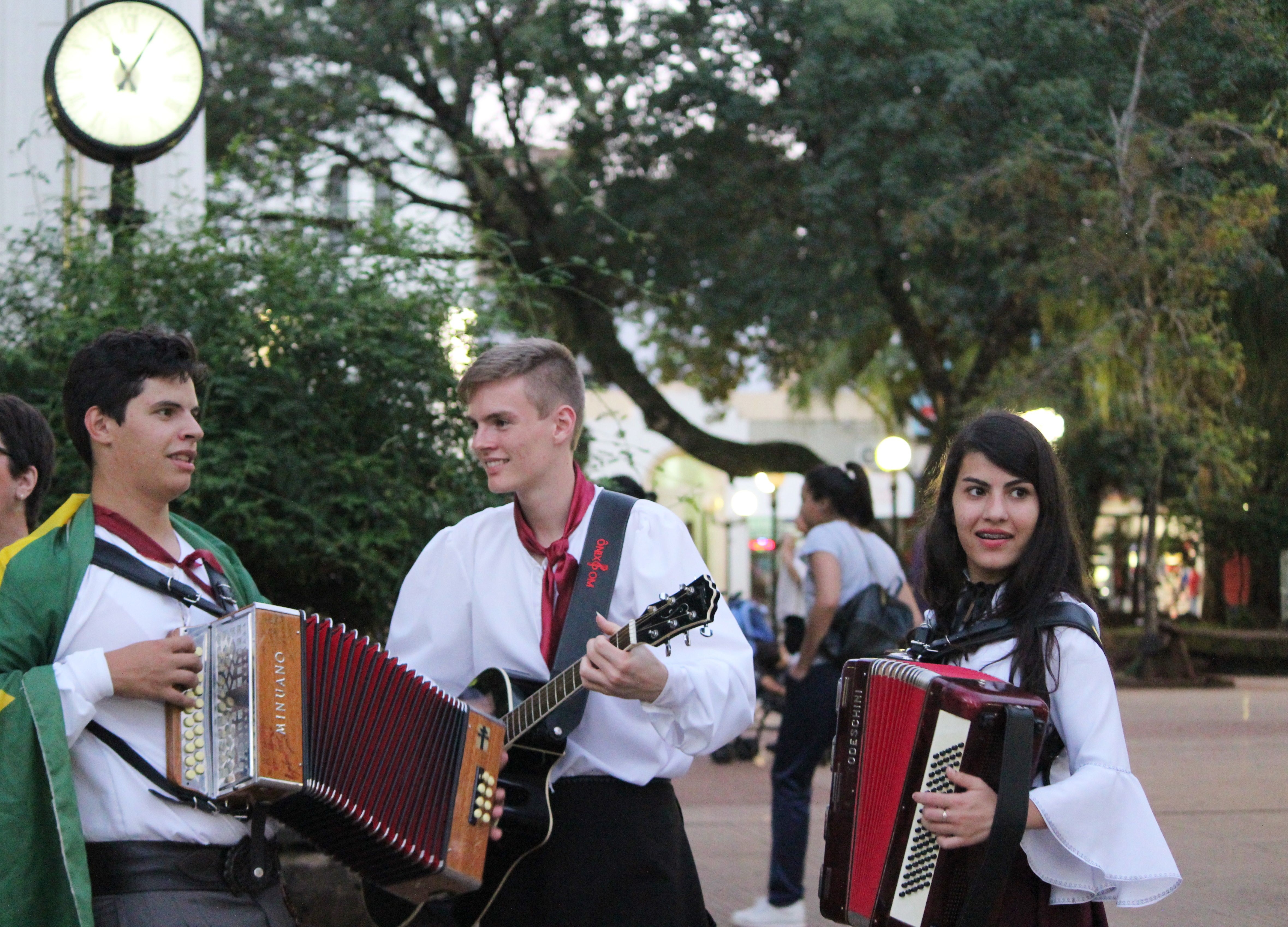 Na viagem à Argentina, os servidores e o grupo de dança, alunos do projeto de pesquisa Políticas Públicas para a cultura, coordenado pela docente Nelcí participaram do evento, em todas as ações ligadas às atividades da temática empreendedorismo, mesma ocasião em que apresentaram-se para o público do evento, através das danças e com música no acordeon e violão e apresentação da chula. Também assistimos apresentações de grupos de danças folclóricas de Posadas e cantores da cidade. Interagiram e trocaram experiências com grupos de danças de Posadas e grupos de danças do Brasil que também estavam na cidade nestes dias. Esteve participando nesta ação o Grupo de Arte e Cultura Raízes Nativas de Jóia/RS, grupo em que o campus Santo Ângelo promove ações de extensão.