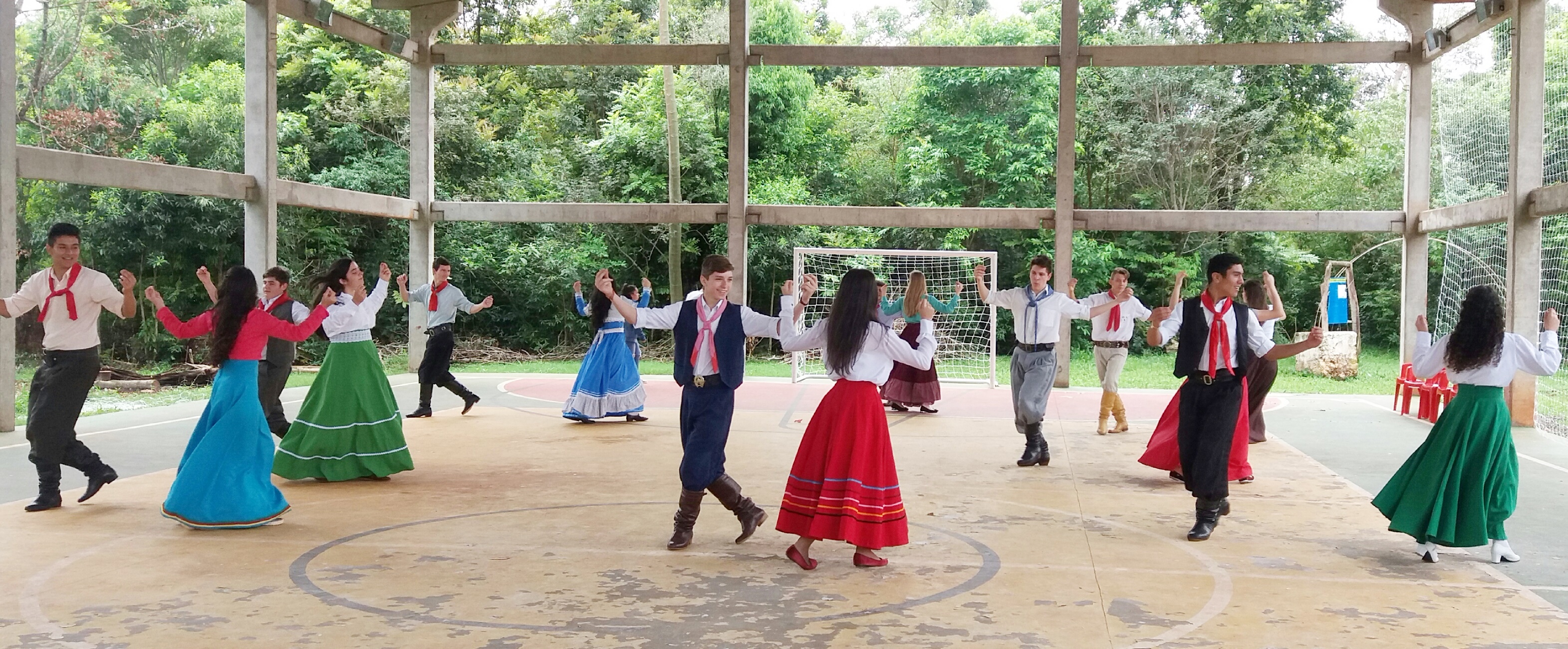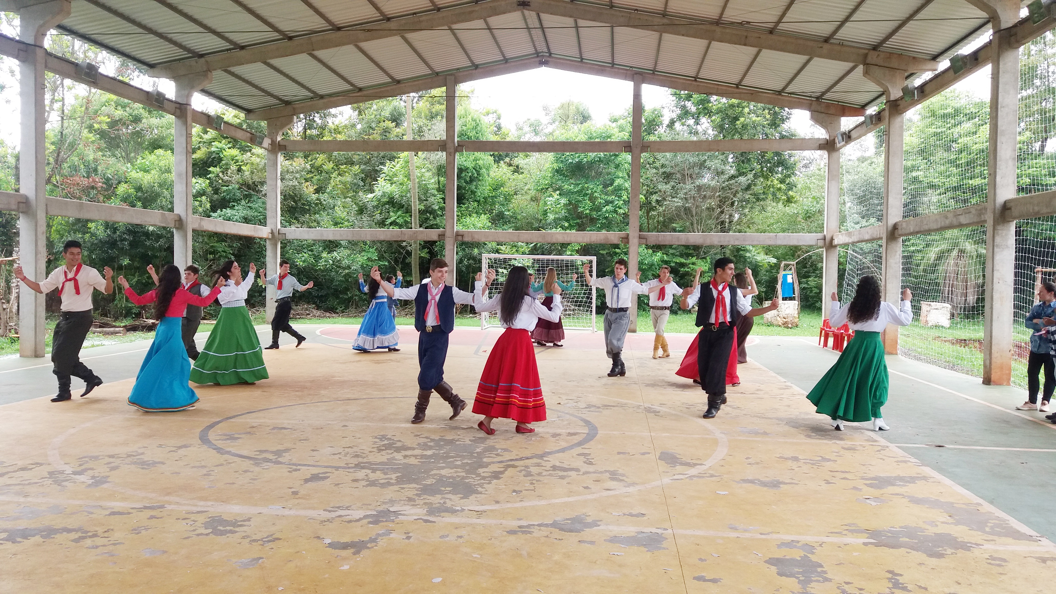 A primeira ação foi o desenvolvimento e a aprendizagem de danças argentinas e gaúchas, de projeção folclórica com um grupo de alunos do Campus Santo Ângelo, realizado pela Docente de Arte Nelcí, de agosto a outubro deste ano. Outra ação foi leitura e conversação, em espanhol, para maior compreensão da língua, do significado da letra das músicas das danças argentinas, ensaiadas pelo grupo. Esta ação foi realizada pela docente Letícia Domanski.