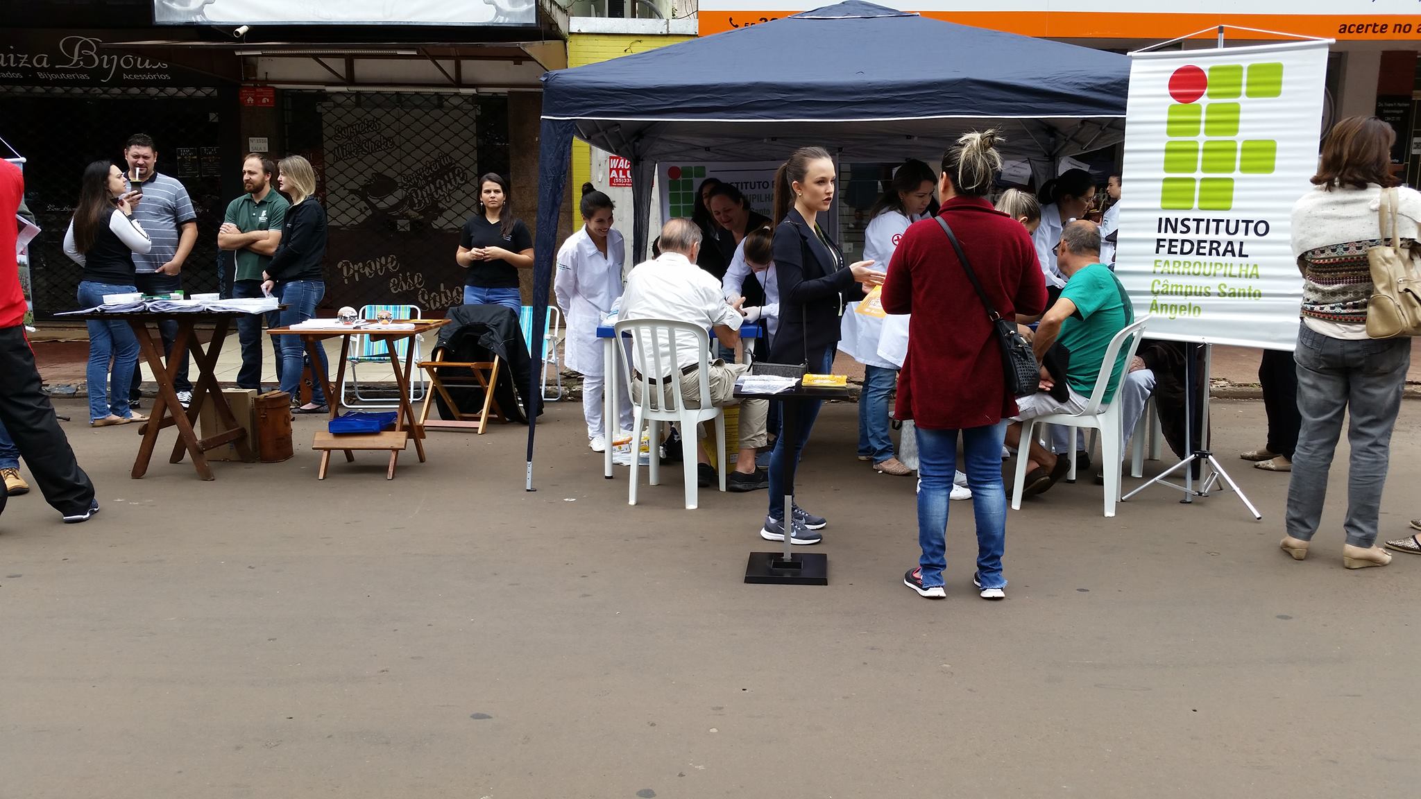 No domingo, 26 de novembro, os alunos do Instituto Federal Farroupilha Campus Santo Ângelo, juntamente com os servidores da Instituição, estiveram participando do Brique da Praça. Na ocasião, os alunos do Curso Técnico em Enfermagem realizaram atendimentos à comunidade e os demais alunos divulgaram os Cursos ofertados pelo IFFar.