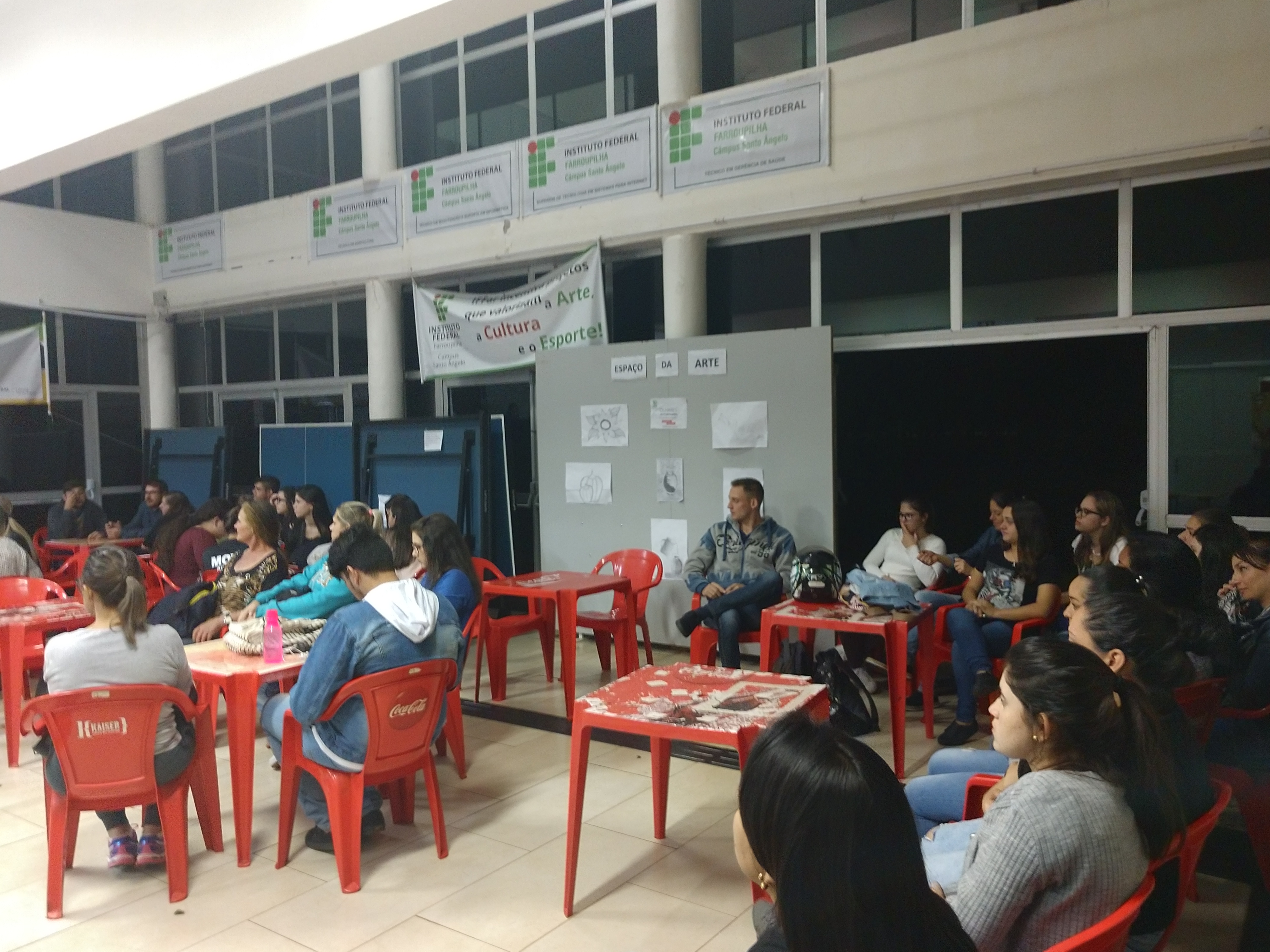 Ainda, a partir da iniciativa dos estudantes, houve rodada de discussões no dia 30/05 pela manhã com os professores e alunos do IFFar Campus Santo Ângelo, a fim de qualificar a participação das pessoas, enquanto cidadãos, nesse difícil processo que a sociedade brasileira tem enfrentado.