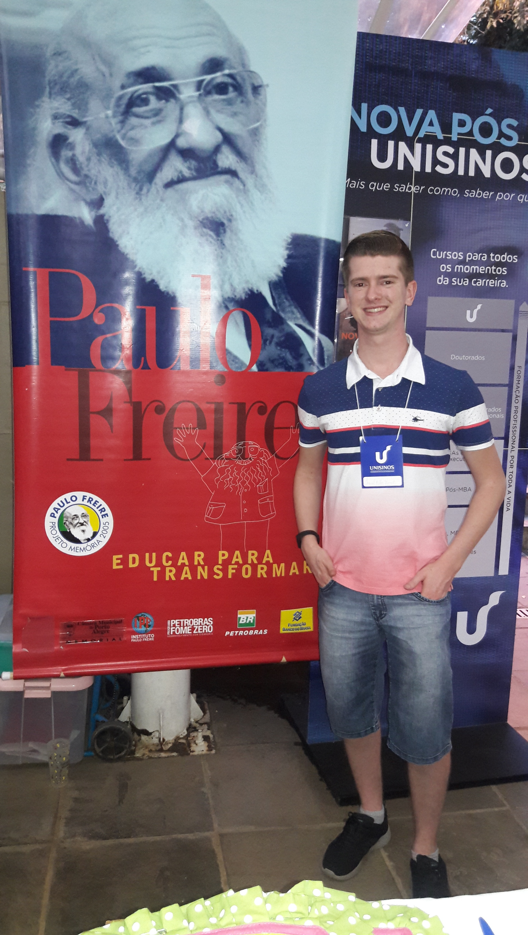 O evento anual que está em sua vigésima edição ocorreu entre os dias três e cinco de maio na Universidade do Vale do Rio dos Sinos - Unisinos na cidade de São Leopoldo/RS. O aluno do Curso Superior em Sistemas para Internet Samuel Müller Forrati, no dia 04/05 teve a oportunidade de participar e apresentar o trabalho elaborado, acerca do desenvolvimento do Projeto de Pesquisa “Formação de professores: compromissos e estratégias institucionais do Instituto Federal Farroupilha” orientado pela Professora e Doutora em Educação Eliane de Lourdes Felden, tendo como colaborador o também aluno Curso Superior em Sistemas para Internet, Anderson Daniel Stochero. O trabalho denominado: “FORMAÇÃO DE PROFESSORES: DISCUSSÕES EPISTEMOLÓGICAS NA PERSPECTIVA DE PAULO FREIRE E OUTROS AUTORES” relata alguns dos resultados obtidos através da pesquisa no ano de 2017, sob o viés da ótica Freireana, além de outros estudiosos da área. Vale ressaltar que o projeto, em 2018, foi renovado para o seu segundo ano.