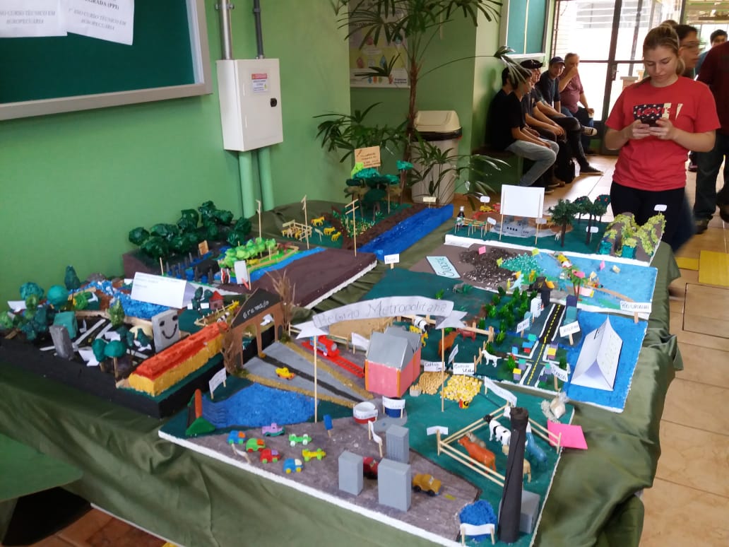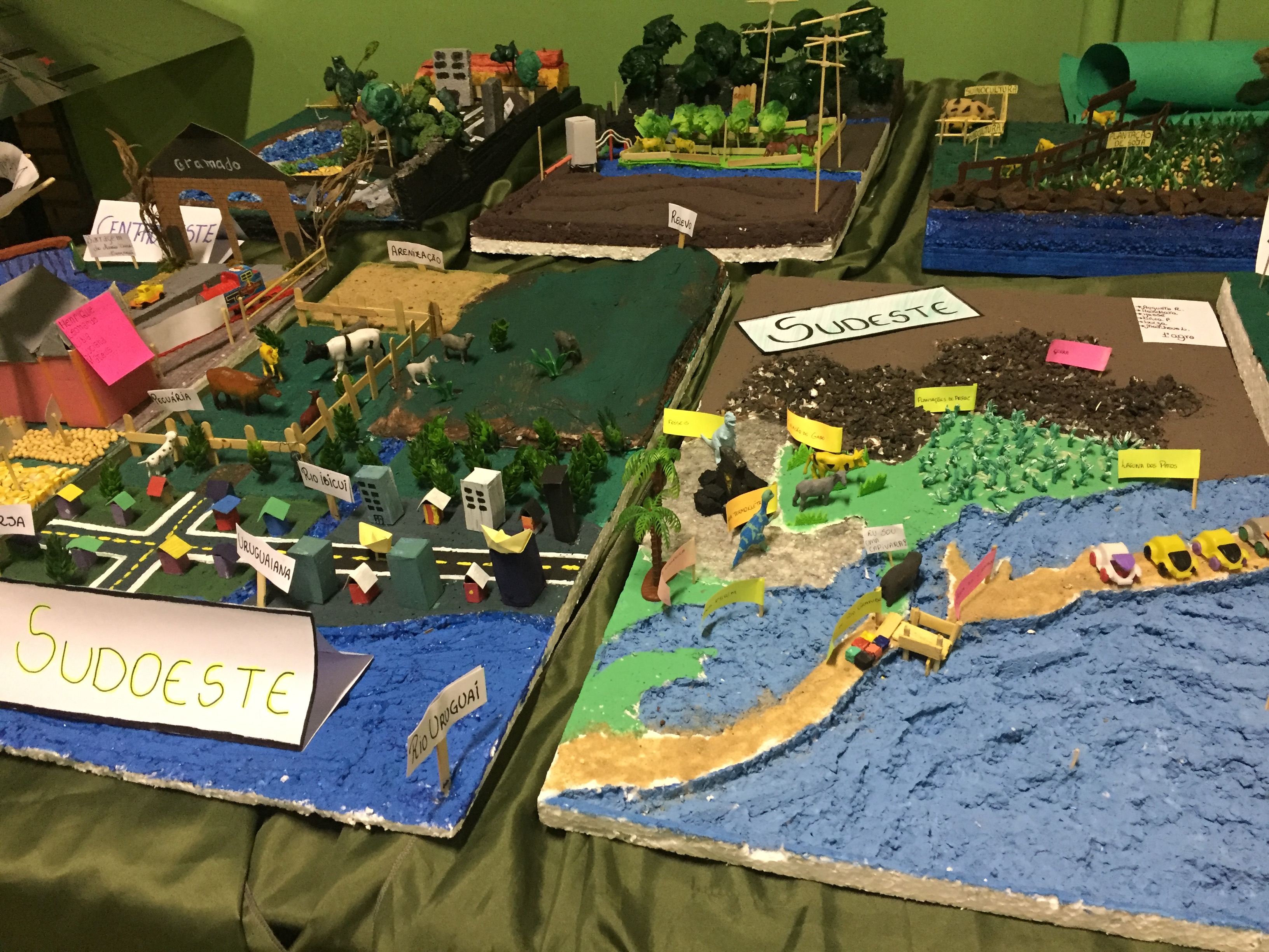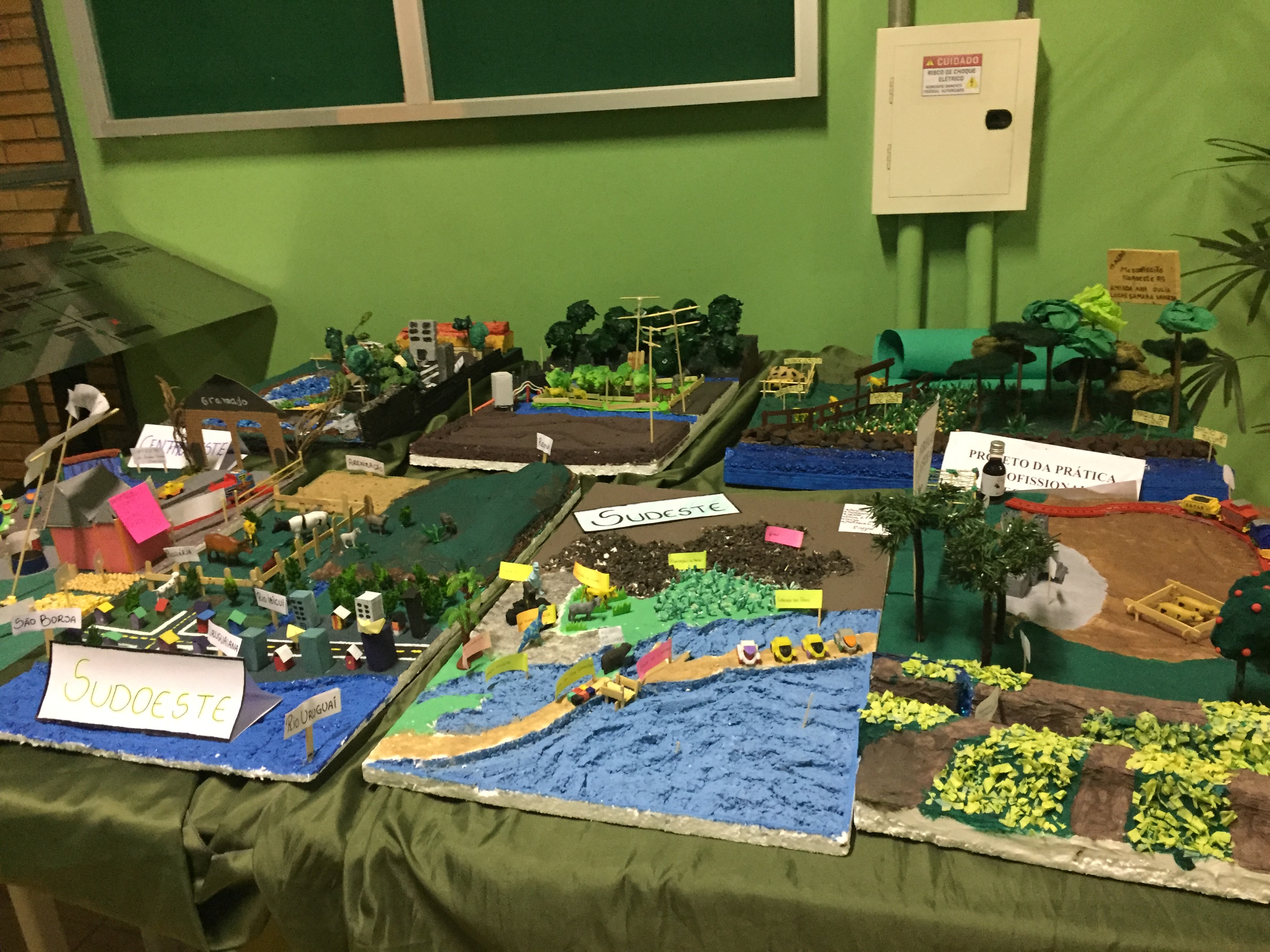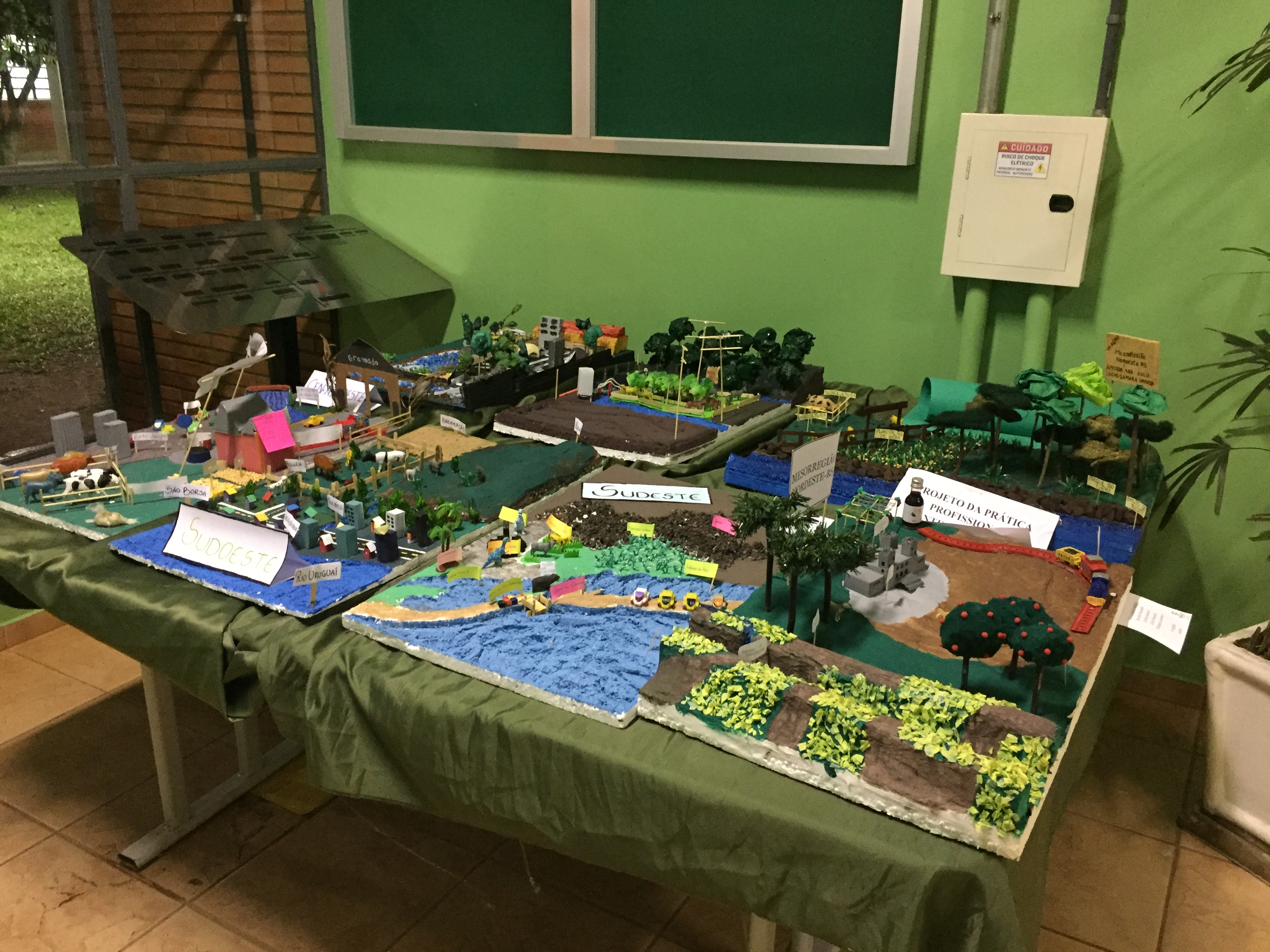 Após a realização do estudo de cada mesorregião, os grupos elaboraram uma maquete com dimensões de no mínimo 80 x 50 cm, onde foi apresentada e caracterizada cada uma das macrorregiões, além de poderem elaborar outros materiais, como perfis de solo de cada região, pôster, apresentação em power point, álbum seriado, entre outros. Os trabalhos foram expostos no corredor do prédio F, para estudantes e professores pudessem conferir, também deverão ser apresentados na Mostra Técnica da Instituição, que será realizada no dia 24 de novembro.