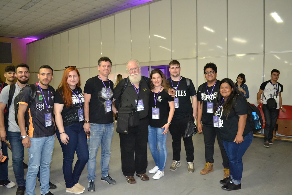 Figura já carimbada do evento, John “Maddog” Hall, em sua palestra traçou uma breve linha do tempo com análises e críticas ao desenvolvimento da tecnologia desde 1969, ano de origem do Linux, até a atualidade; identificando desafios, competências, falhas e riscos para posteridade.