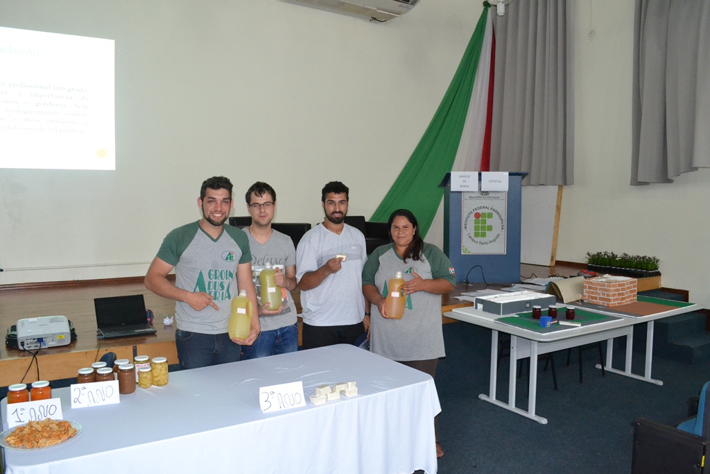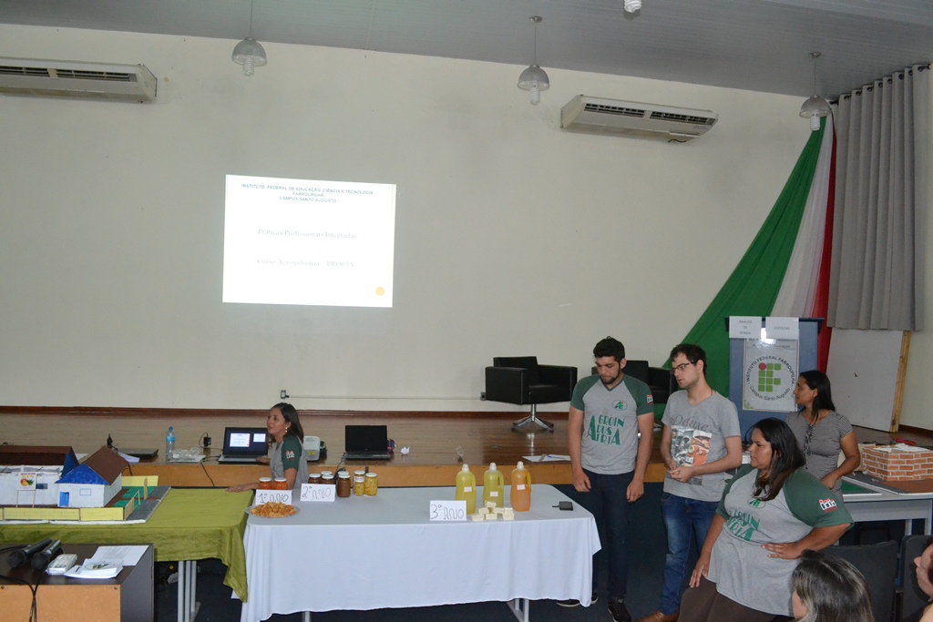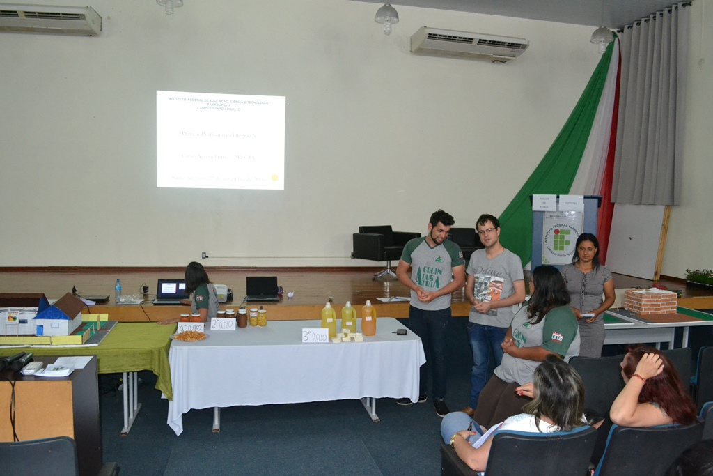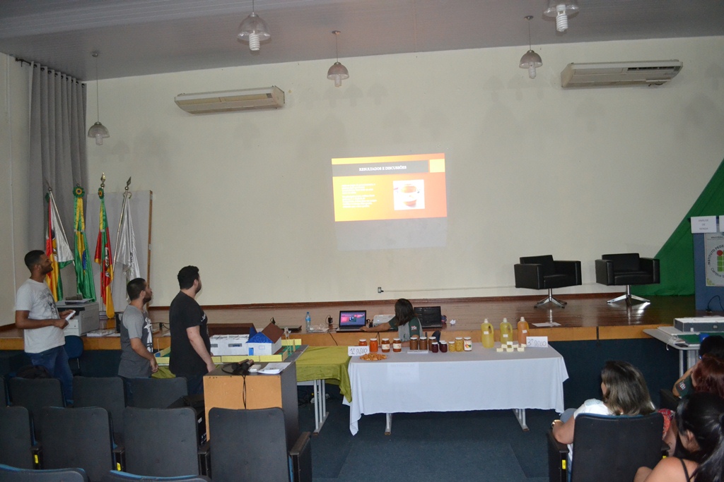 Cada turma ficou encarregada de apresentar as atividades desenvolvidas nas Práticas Profissionais Integradas - PPI. O 1º ano apresentou a PPI relacionada ao processamento de abóbora de pescoço, onde cada grupo ficou responsável por uma formulação: polpada (ou schimier), doce em calda e rapadura de abóbora com coco. O 2º ano, por sua vez, trouxe a experiência de construção de maquetes de agroindústrias vegetais e elaboração dos respectivos produtos, tendo sido produzido ao longo do semestre, doce de banana, abacaxi em calda e geleia de morango. A turma do 3º ano encerrou as participações de alunos com a apresentação da PPI denominada "Reaproveitamento do óleo para produção de sabão". Este último trabalho representou o curso na Mostra Técnica do campus, realizada no sábado dia 24.