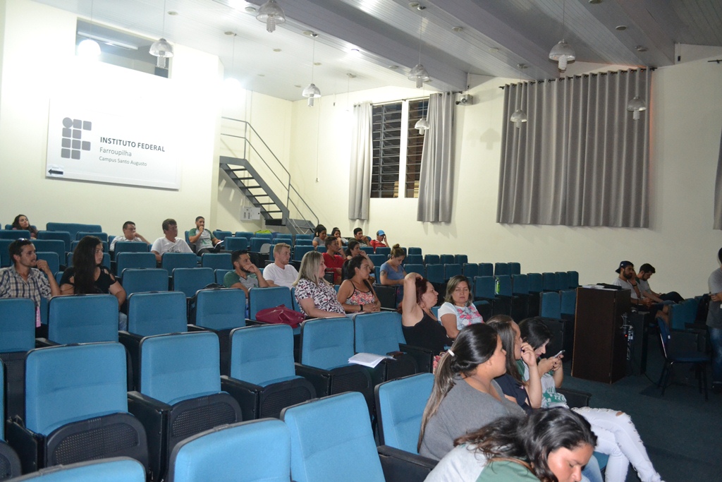 O IFFar – Campus Santo Augusto promoveu na noite de quinta-feira, dia 22 de novembro, no auditório da instituição, a Palestra de Esclarecimentos para os candidatos inscritos no processo seletivo do curso técnico em Agroindústria integrado ao ensino médio na Modalidade Proeja, para o ano de 2019. Estiveram presentes a maioria dos inscritos, que puderam na sequencia acompanhar o evento integrado das turmas em andamento.