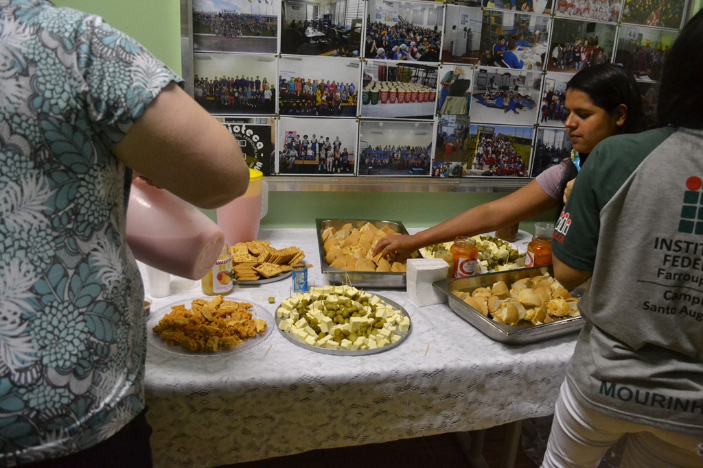 O encerramento do evento integrado foi com um lanche oferecido pelo eixo de produção alimentícia, no qual foram servidos os produtos elaborados pelos estudantes do curso de Agroindústria em suas práticas de ensino. Estiveram presentes os professores João Paulo Massotti, Eleonir Diniz, Janaína Muller, Alecsandra Cunha, Djeniffer Kipper e a coordenadora do PROEJA Janice Boeira.