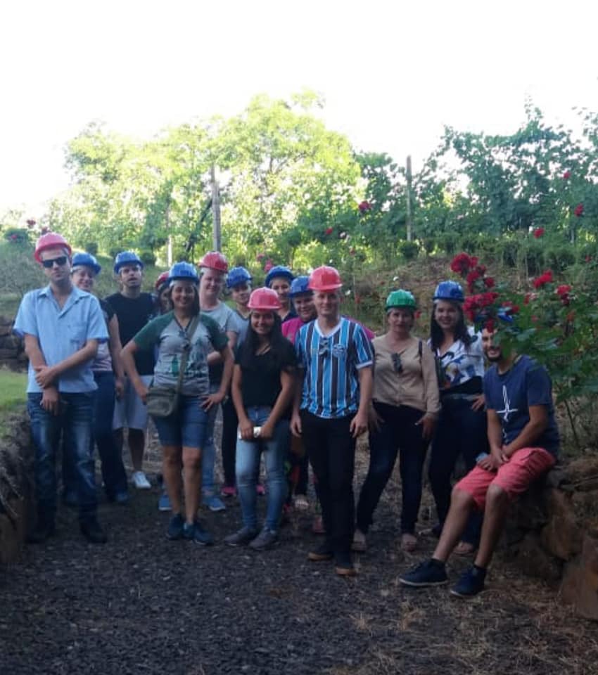 Durante a manhã, o grupo acompanhado pela professora Janice Boeira, visitaram a Vinícola Ametista, para saber mais sobre vitivinicultura, também conheceram a Mineração Dutra, garimpo em atividade onde puderam assistir a apresentação sobre a formação geológica das pedras, extração, trabalho no garimpo, doenças do trabalho e demonstração ao vivo da perfuração e simulação de uma explosão.