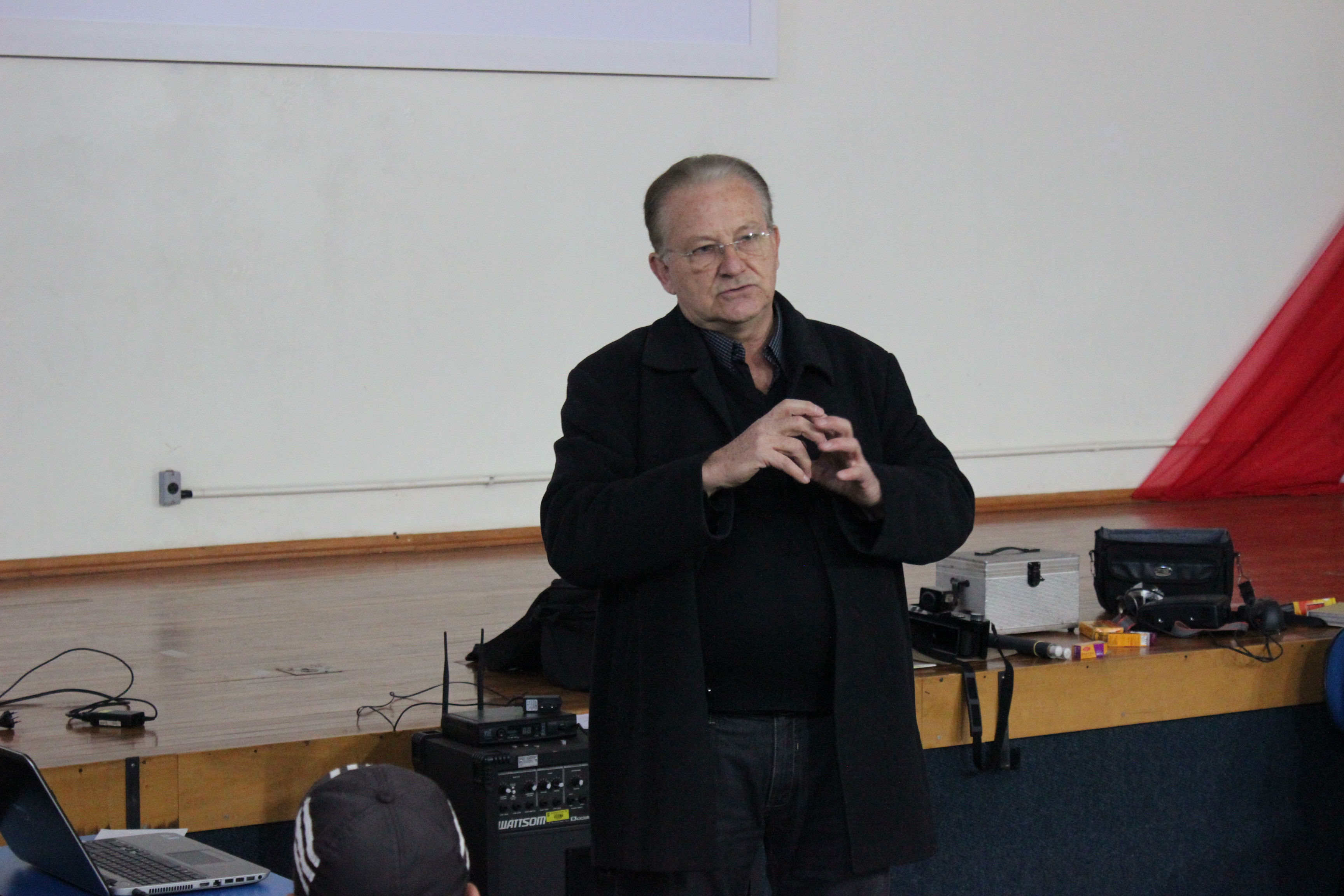 A palestra foi na manhã de quarta-feira, 08 de junho, no auditório da Instituição. Focados nas palavras, imagens e máquinas antigas apresentadas pelo convidado, como a “Mamute”, a maior câmera fotográfica do mundo (v. anexo), os alunos puderam, além de conhecer ou aprofundar seus conhecimentos, tirar dúvidas sobre a arte de fotografar. Luz, enquadramento, cenário, criatividade... tudo isso foi esmiuçado pelo grupo.