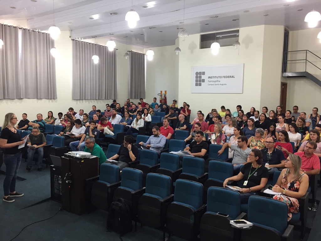 Na tarde de quarta-feira, dia 17 de abril, os servidores do IFFar – Campus Santo Augusto participaram de uma reunião geral no auditório da instituição para tratar de diversos assuntos e também apresentação dos novos servidores.