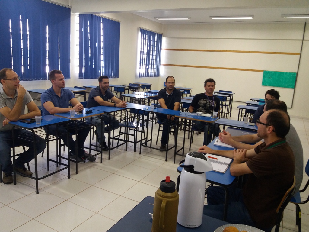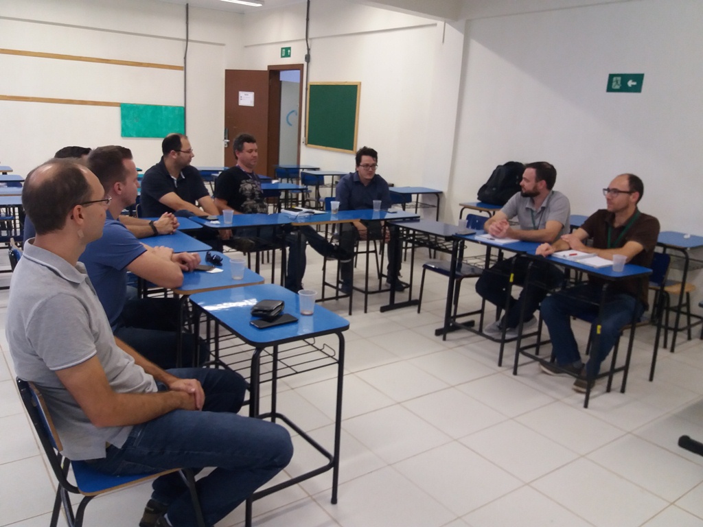 Aproveitando a passagem dos professores Lucas e Rodrigo pela instituição, os integrantes do NIT do IFFar - Campus Santo Augusto realizaram pela manhã um momento de troca de experiências, onde foram debatidas ações realizadas pelos Núcleos de ambos os campi, buscando identificar trocas de experiências e ações futuras conjuntas.
