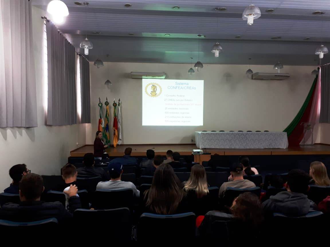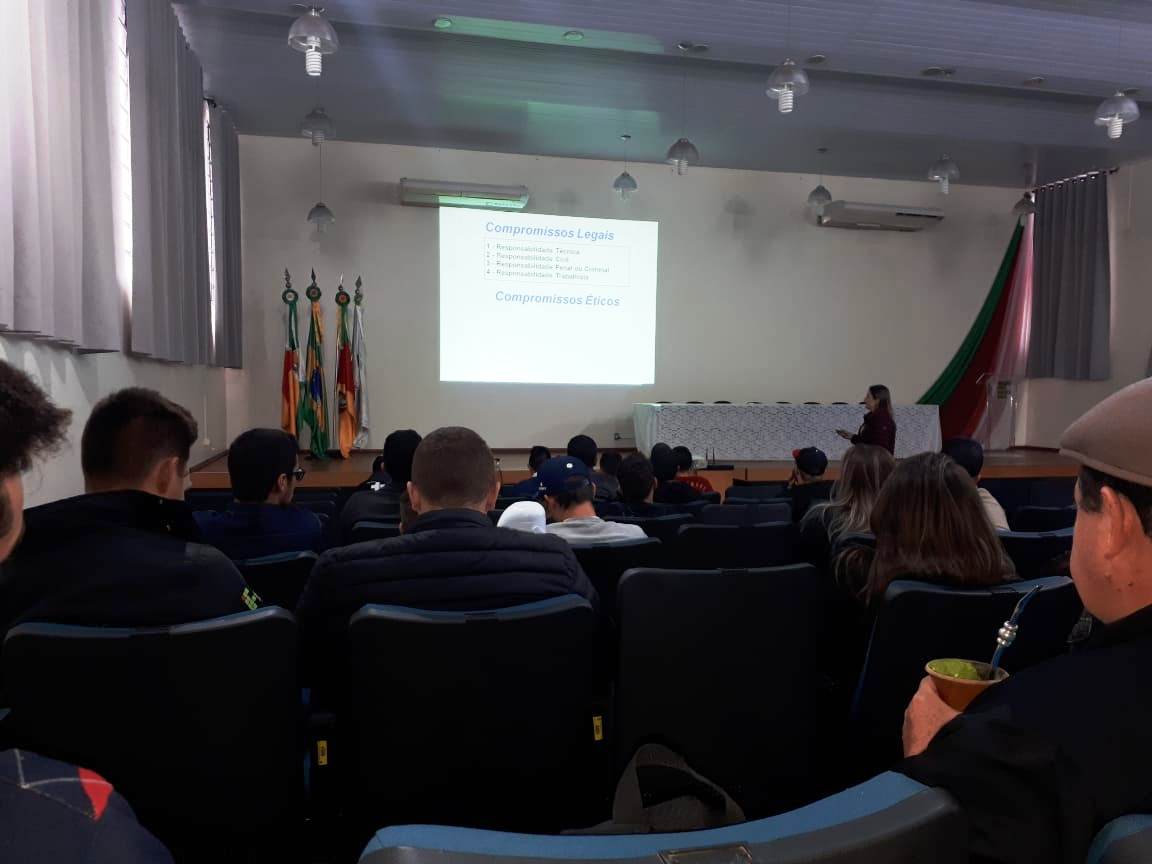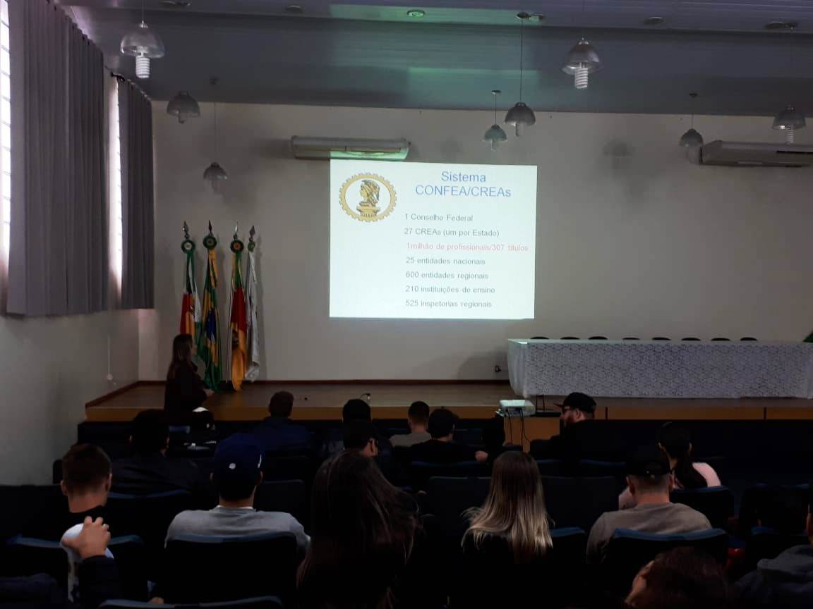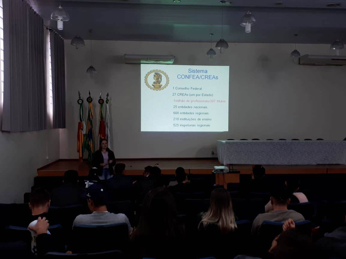 Na ocasião, a Conselheira Cleusa ministrou palestra para os estudantes, no auditório da instituição, sobre as atribuições profissionais; fiscalização das atividades vinculadas ao Conselho; anotação de responsabilidade técnica – ART; Código de Ética Profissional; importância do Registro de Pessoas Físicas e Pessoas Jurídicas no Crea, entre outros assuntos ligados à área de atuação de um Engenheiro Agrônomo.