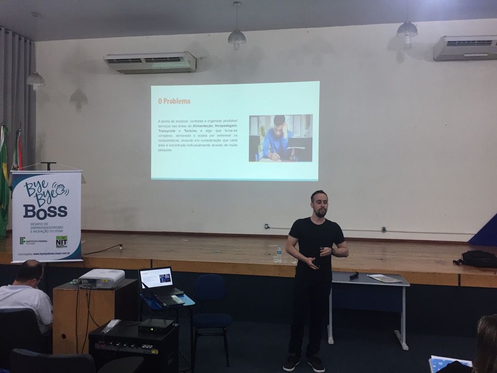 Na ocasião, três equipes apresentaram suas ideias de negócios para os trio de jurados formado pelos seguintes empresários: Liliane Cristina Goettems - sócia da empresa Avozzani Móveis Exclusivos, com loja e fábrica na cidade de Três Passos, e filial em Santo Augusto; Roberto Scherer Soares - empresário da cidade de Três Passos, sócio do Restaurante Thay (comida oriental), Mr. Pancho (cachorro quente uruguaio) e da Kaffee Bistrô (cafeteria), também já foi professor substituto de economia do IFFar – Campus Santo Augusto e mentor do Bye Bye Boss em 2018; Renato Marodin, sócio do Jornal O Celeiro e Rádio Ciranda, também representando a Associação Comercial, Industrial, Serviços e Agropecuária de Santo Augusto -ACISA, entidade muito parceira do NIT e campus em diversas ações realizadas.
