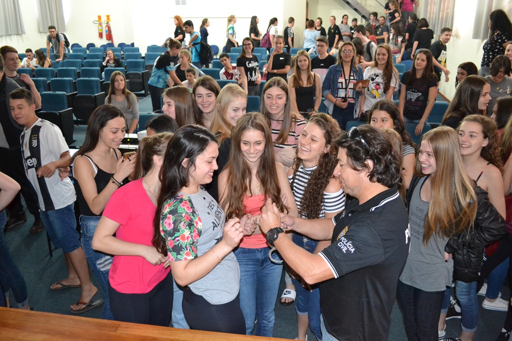 A conversa da Delegada com os estudantes foi bem informativa e descontraída, os quais interagiram bastante, tanto nos momentos de brincadeira, quanto nos assuntos mais sérios, como bullying, drogas e suicídio. No final os estudantes fizeram fila para provar um colete à prova de balas e também puderam brincar de ser algemados pela polícia. Caroline prometeu que em outra oportunidade virá até o campus para uma palestra para os estudantes dos cursos superiores.