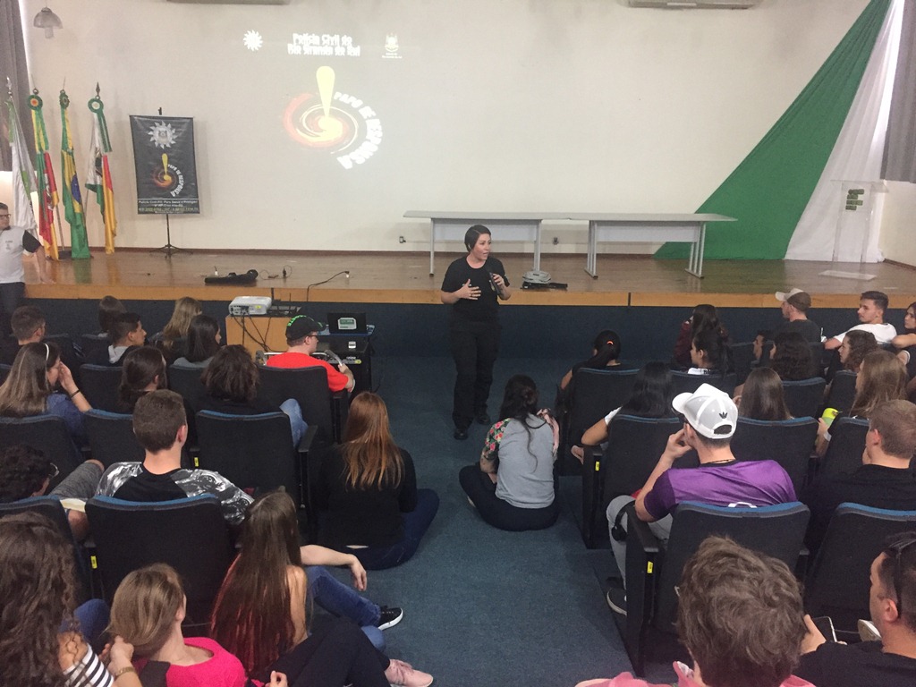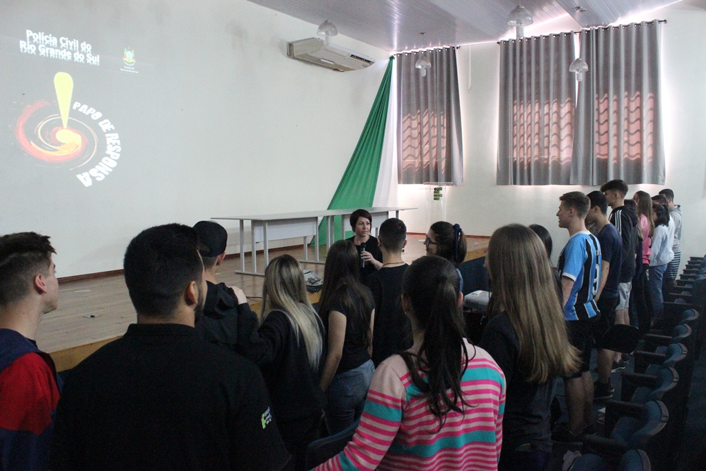 A Delegada Caroline trouxe para a instituição a palestra do “Programa Papo de Responsa”, desenvolvido desde 2016 pela Polícia Civil do Rio Grande do Sul, com atuação junto às escolas de ensino fundamental e médio, na promoção de um diálogo descontraído sobre prevenção à violência e o papel do policial na sociedade, tendo como público alvo a interlocução com crianças, adolescentes e jovens. Também é falado sobre Bullying, violência, e os atos infracionais e seus desdobramentos.