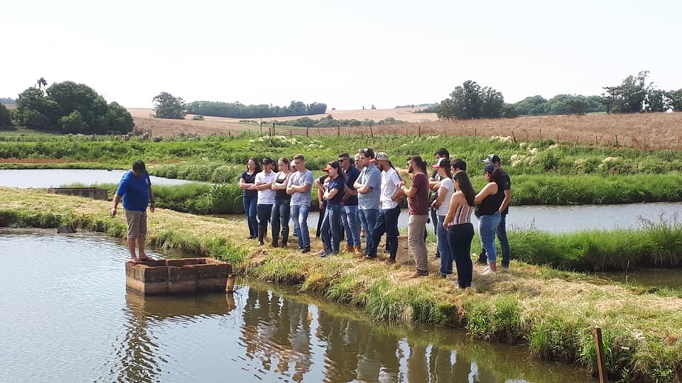 Os estudantes do 2º semestre do curso superior de Tecnologia em Gestão do Agronegócio, do IFFar – Campus Santo Augusto, acompanhados pela professora Edna Nunes Gonçalves, visitaram no último sábado, dia 09 de novembro, a Piscicultura Andreghetto, no município de Ajuricaba.