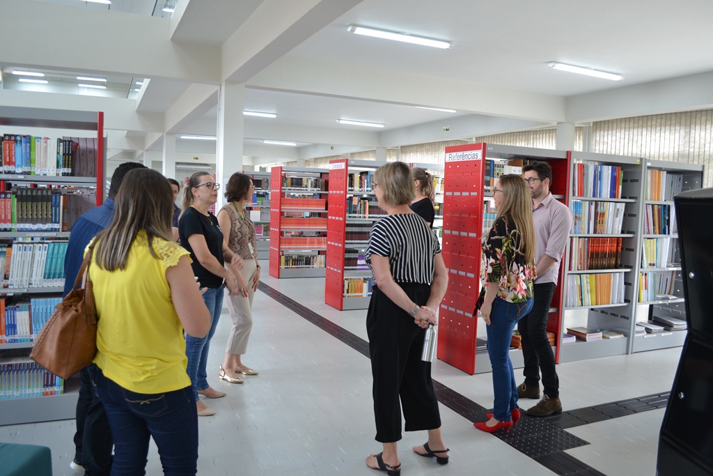 Após o meio dia, foi realizada uma visita à nova Biblioteca Mário Quintana, seguida por reuniões com as lideranças estudantis e Equipe Diretiva e reuniões setorizadas com os Pró-Reitores, diretores, coordenações, coordenadores de cursos, CGP e NPI. A visita foi finalizada com uma Explanação da Reitora para todos os servidores no Auditório.