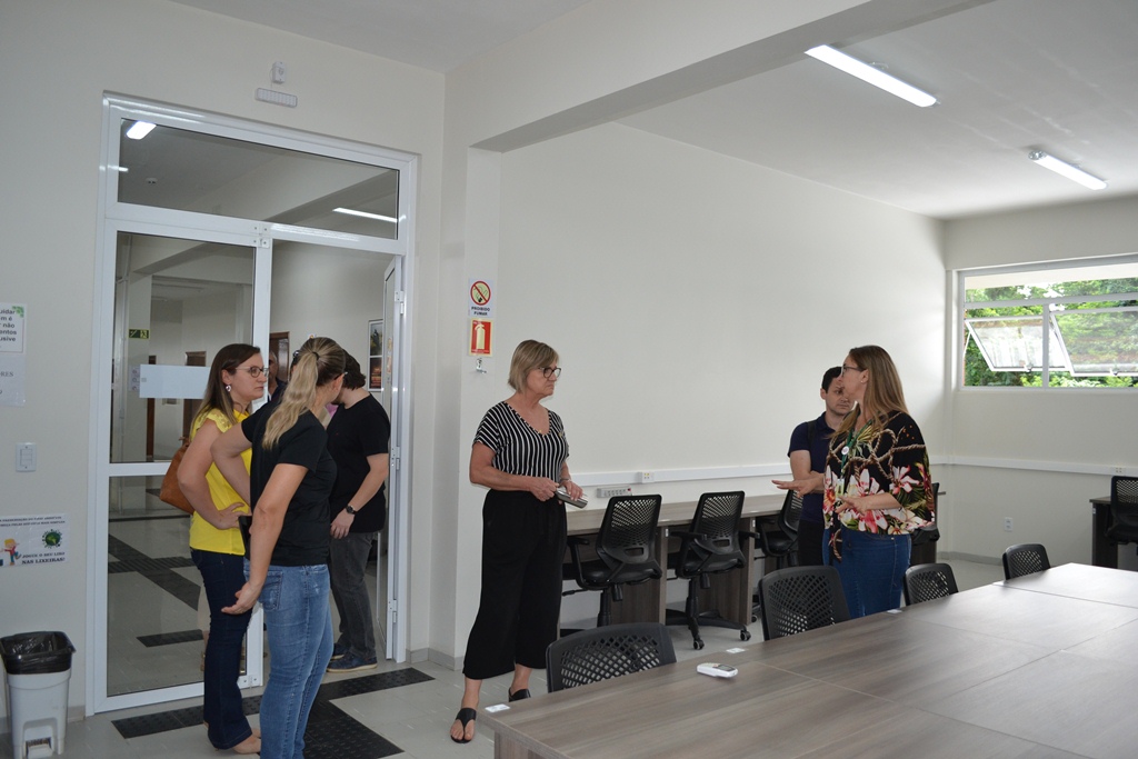 A comitiva da Reitoria foi recebida pela manhã pela Diretora Geral do Campus Santo Augusto, Verlaine Gerlach em seu gabinete, juntamente com a equipe diretiva, onde participaram de uma reunião.