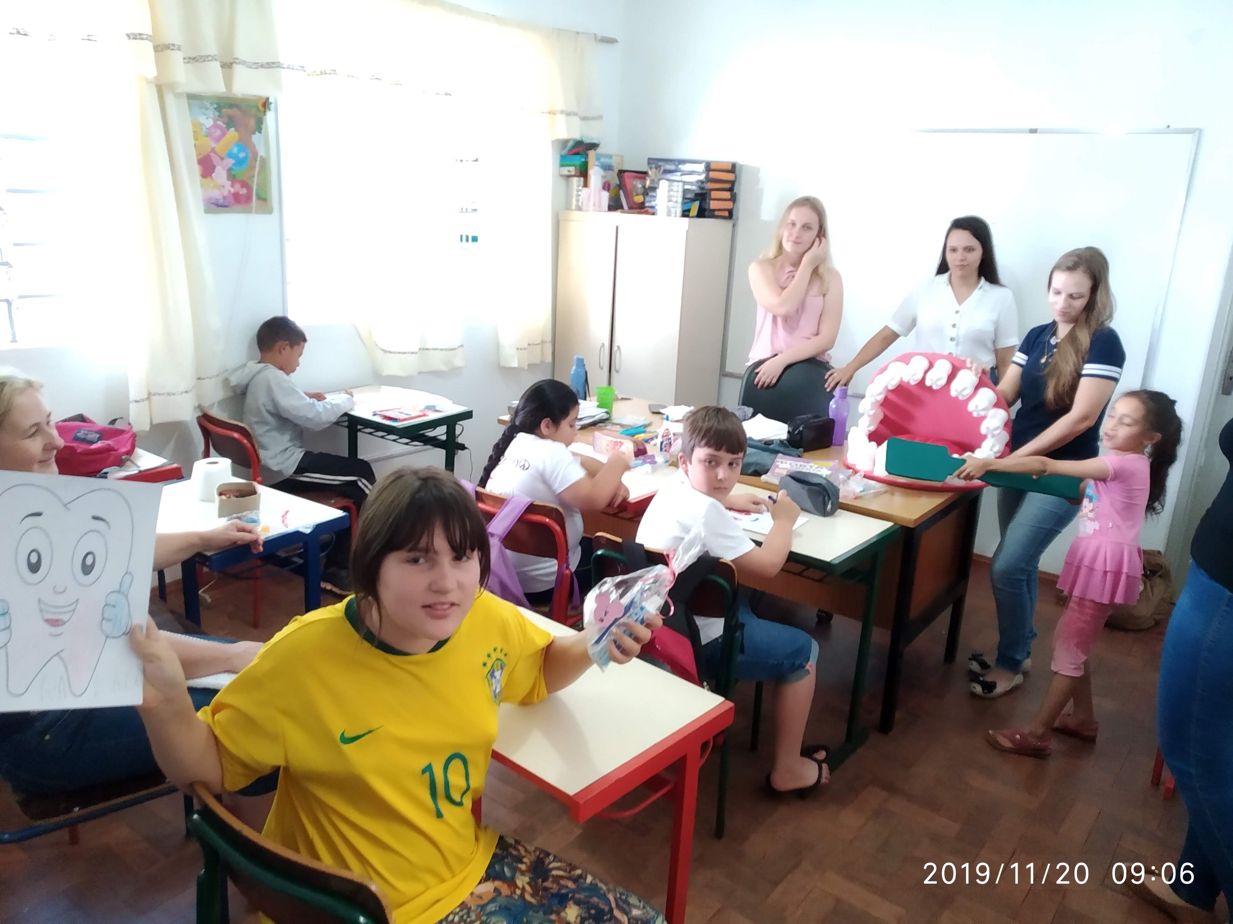 Neste ano a turma do 6º semestre da Licenciatura em Ciências Biológicas foi divida em três grupos, a partir de temáticas consideradas frágeis e apontadas pela APAE com potencialidade para serem trabalhadas pelos licenciandos. As temáticas estabelecidas foram: saúde bucal, higiene e cuidados com o corpo e cuidados com o meio ambiente.