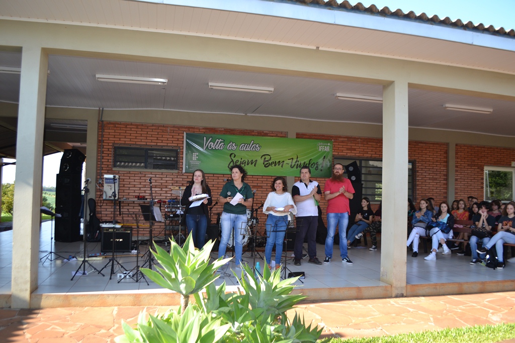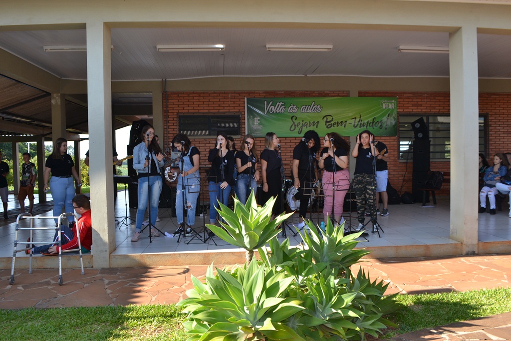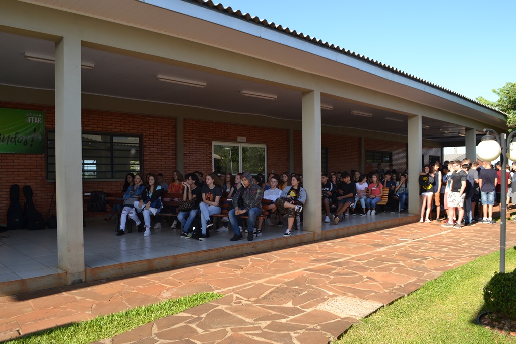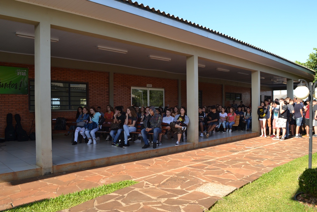 O IFFar – Campus Santo Augusto iniciou na manhã de quinta-feira, dia 13 de fevereiro, às aulas para os cerca de 400 alunos dos cursos técnicos integrados ao ensino médio. Os estudantes foram reunidos no pátio em frente ao refeitório para participarem das atividades de acolhimento, organizadas pela Coordenação de Assistência Estudantil – CAE e pelo Grêmio Estudantil Honestino Guimarães, tendo como atração principal a banda IF Musical.