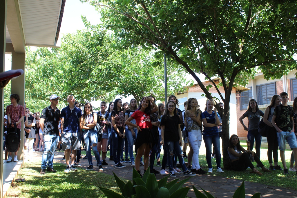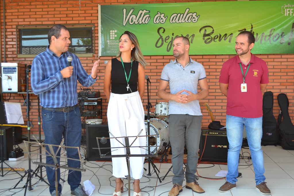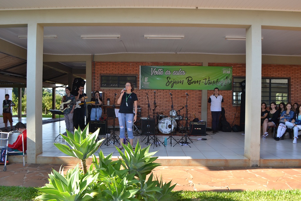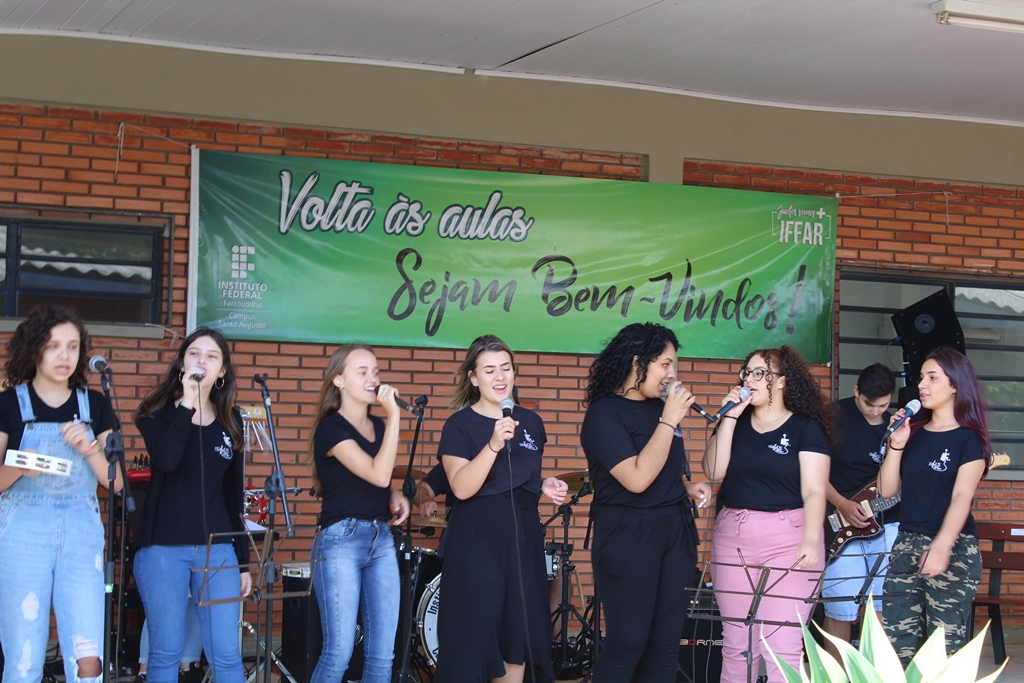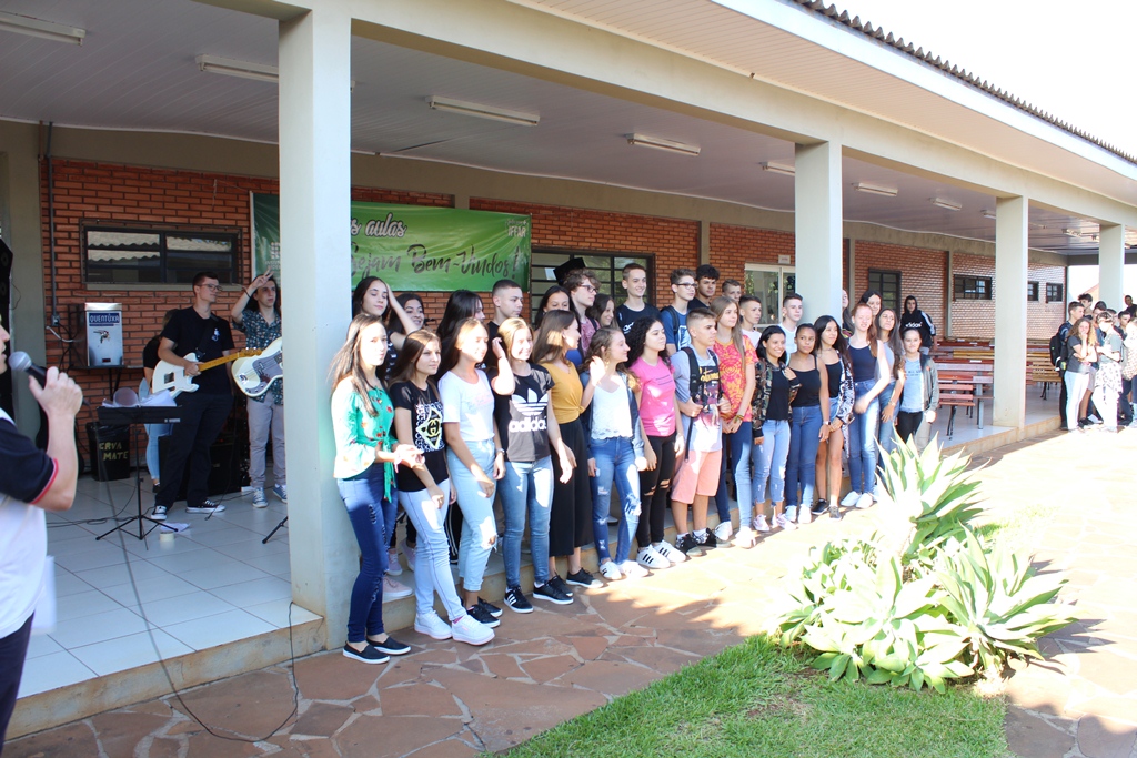 O IFFar – Campus Santo Augusto iniciou na manhã de quinta-feira, dia 13 de fevereiro, às aulas para os cerca de 400 alunos dos cursos técnicos integrados ao ensino médio. Os estudantes foram reunidos no pátio em frente ao refeitório para participarem das atividades de acolhimento, organizadas pela Coordenação de Assistência Estudantil – CAE e pelo Grêmio Estudantil Honestino Guimarães, tendo como atração principal a banda IF Musical.