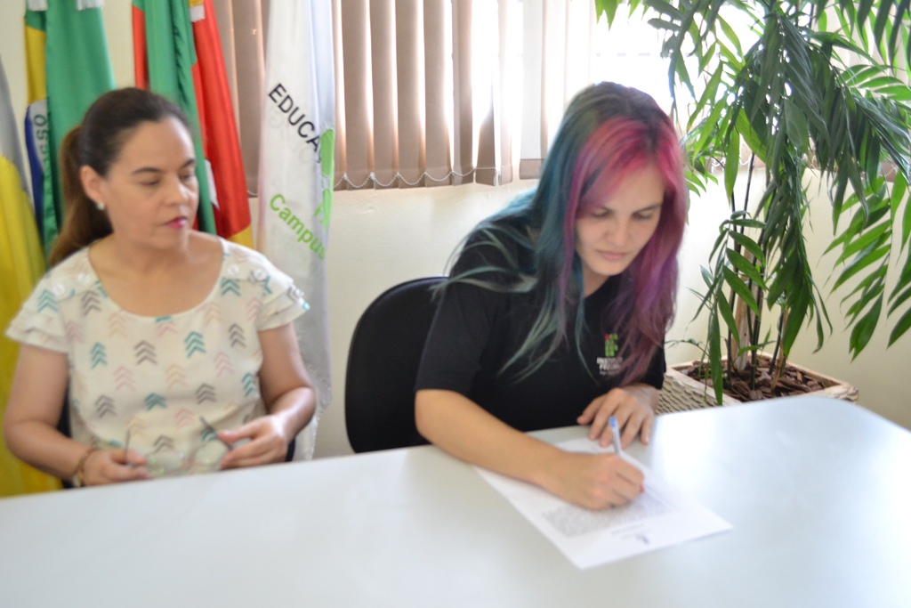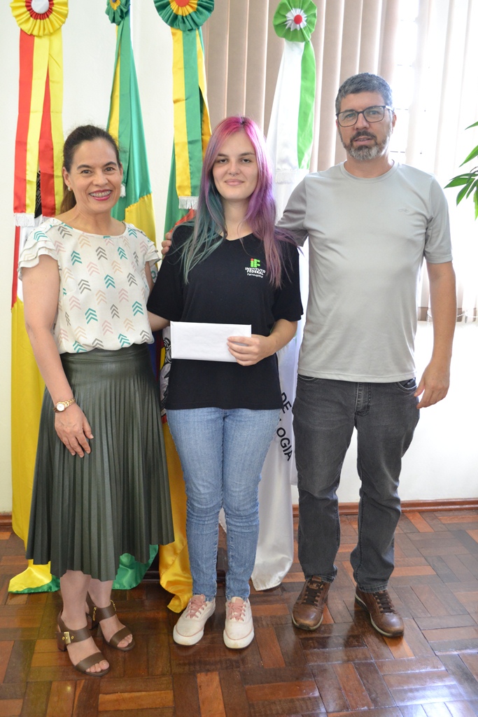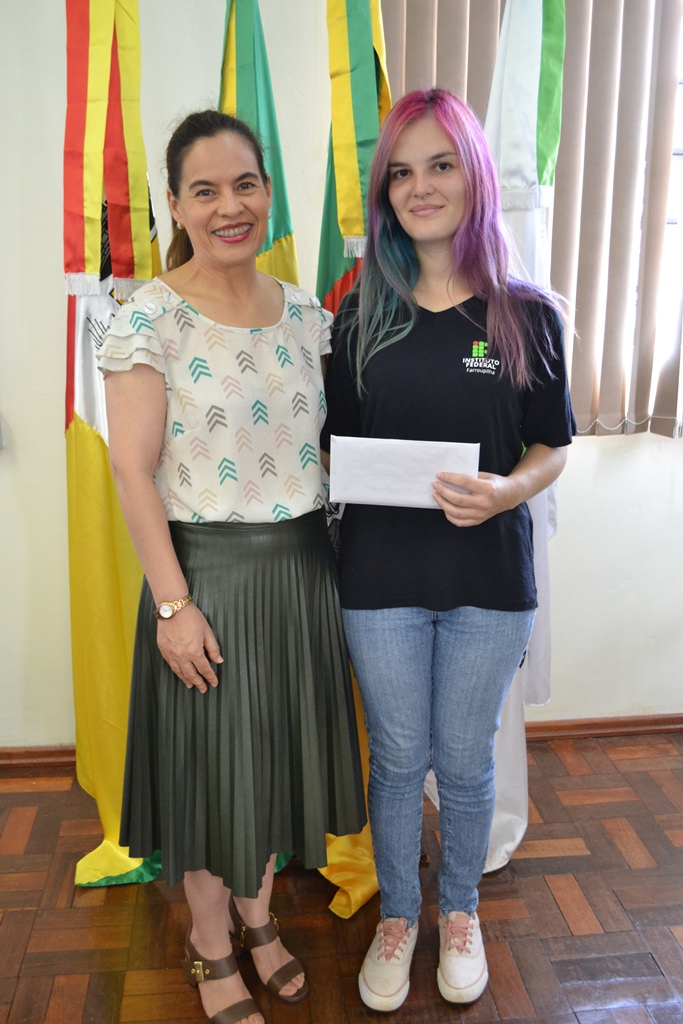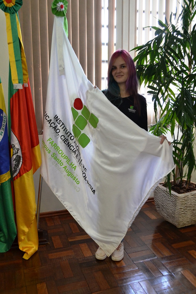 A estudante da 1ª turma do curso superior de Licenciatura em Ciências Biológicas do IFFar – Campus Santo Augusto, Gabriela Inês dos Santos Ávila, colou grau em gabinete na tarde de ontem.