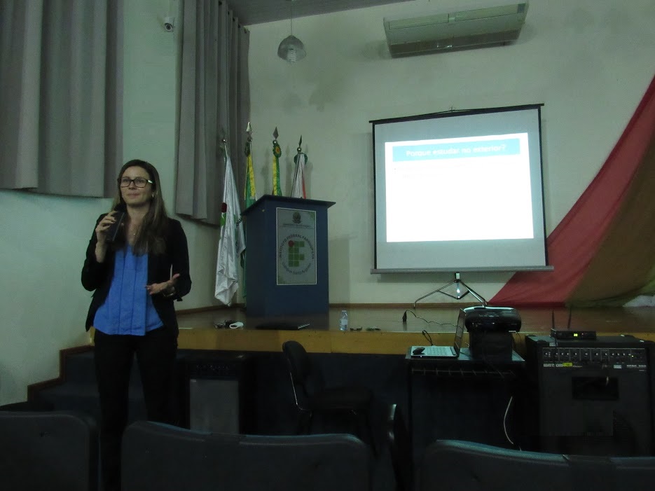 Professora Joseana Severo, em sua fala sobre “Como estudar e morar no exterior”.