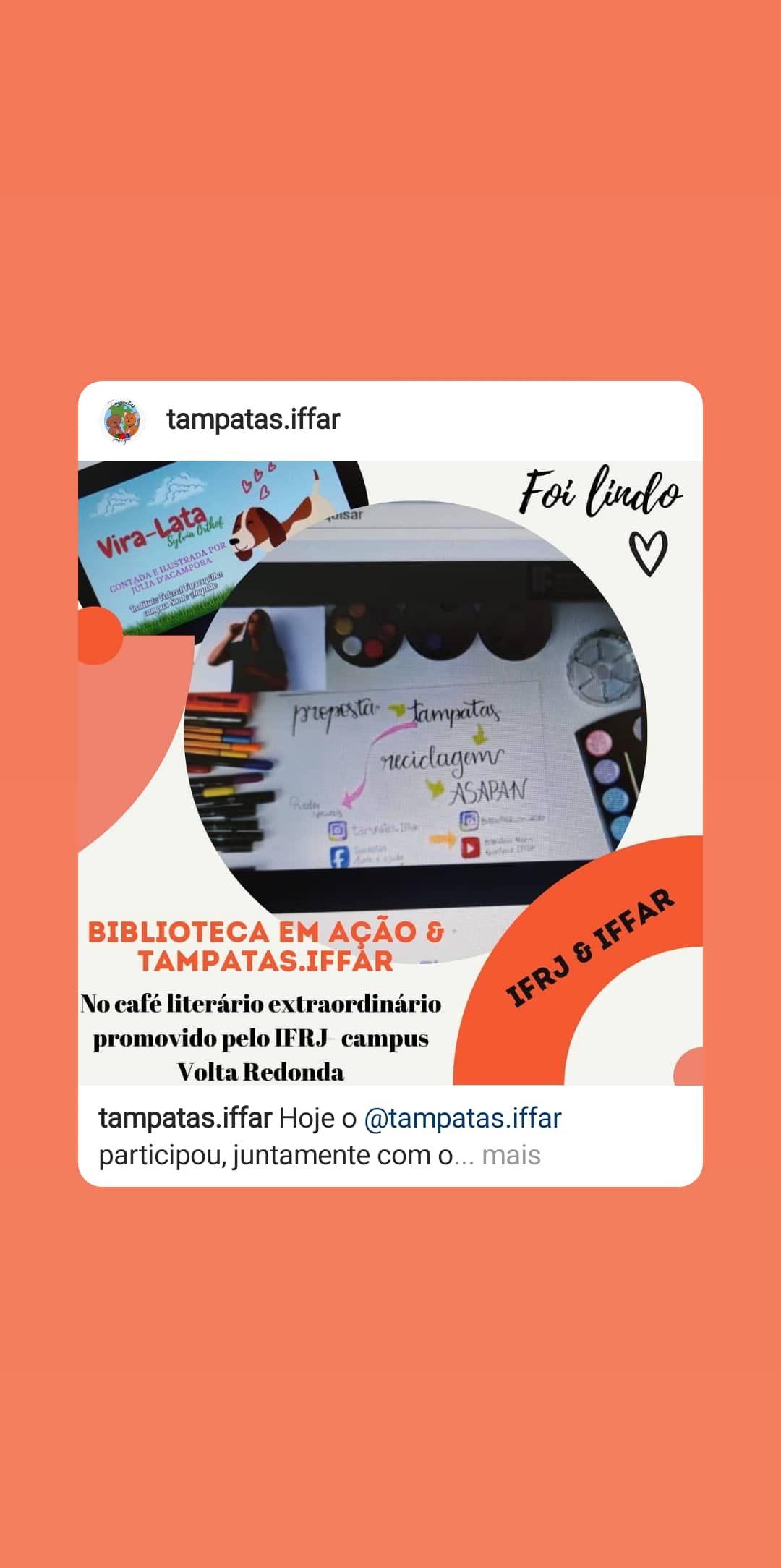 Projetos Biblioteca em Ação: contar, encantar e educar nos tempos da quarentena e Tampatas participam de evento virtual do IFRJ