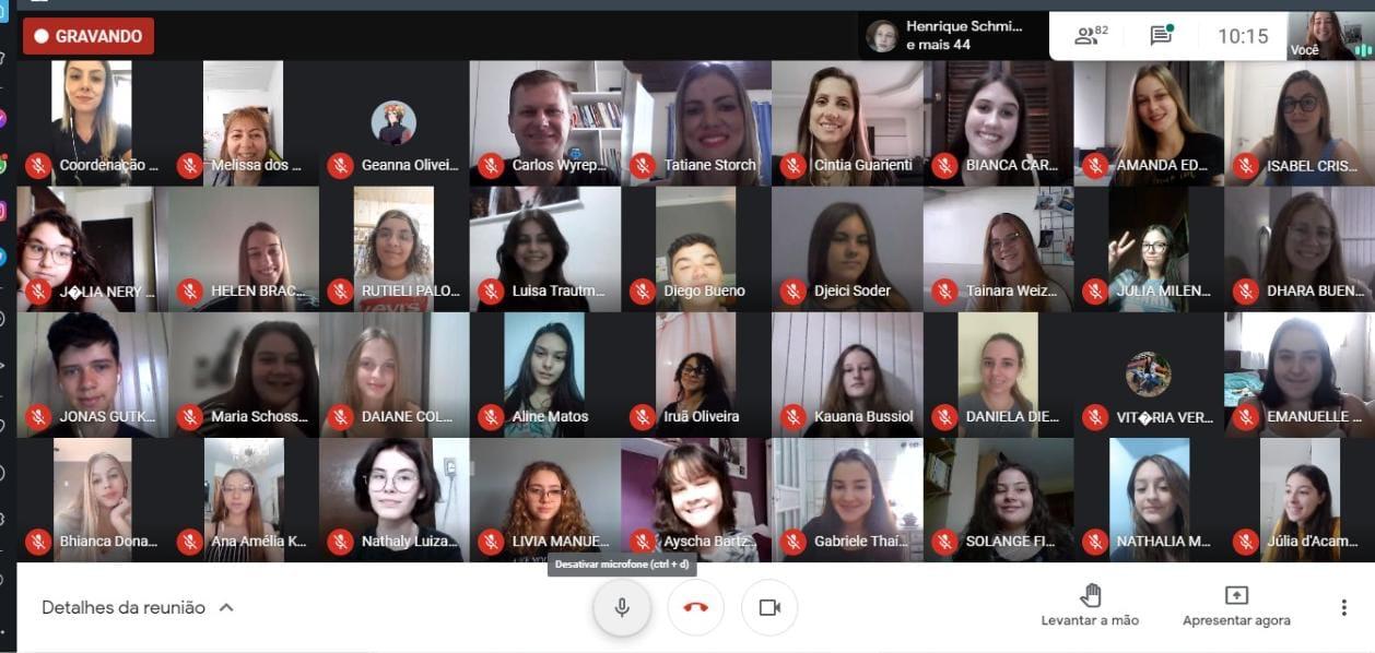 No Campus Santo Augusto foi organizada uma programação online de acolhida, com recepção aos estudantes em seus respectivos cursos pelos coordenadores, na segunda-feira, dia 05, pela manhã e à noite, seguida da apresentação da mensagem da Reitora, Nídia Heringer.