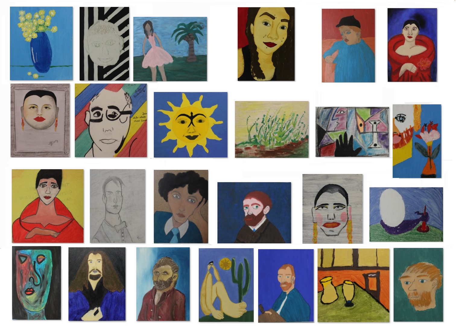 Os alunos do 1º ano do Curso Técnico em Alimentos do IFFar, Campus Santo Augusto, foram desafiados pela Professora de artes, Janaina Feller a elaborar pinturas tendo como temática autorretratos de artistas famosos, dentre eles Van Gogh, Tarsila do Amara, Iberê Camargo e Flávio de Carvalho, e outras representações.