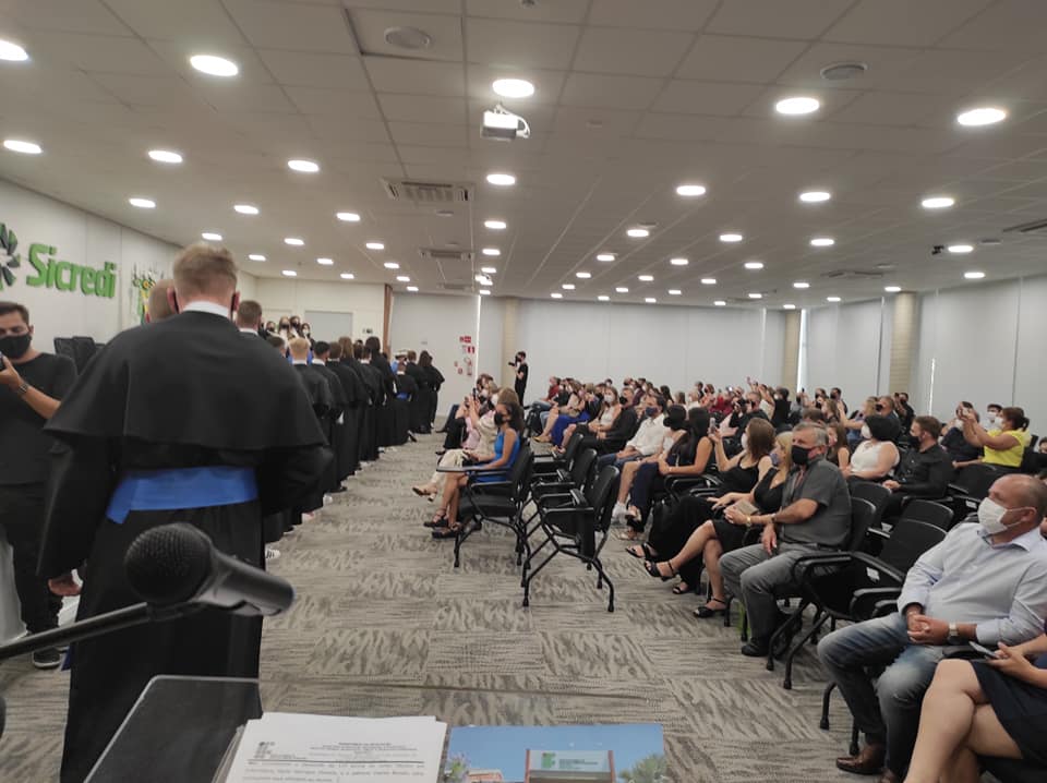 O IFFar – Campus Santo Augusto retomou nos dias 06 e 07 de janeiro, após quase dois anos de atividades remotas, as solenidades de certificação presenciais dos cursos técnicos integrados ao ensino médio de Administração, Agropecuária, Alimentos e Informática. O local das solenidades foi o Auditório da SICREDI de Santo Augusto, gentilmente cedido pela entidade.