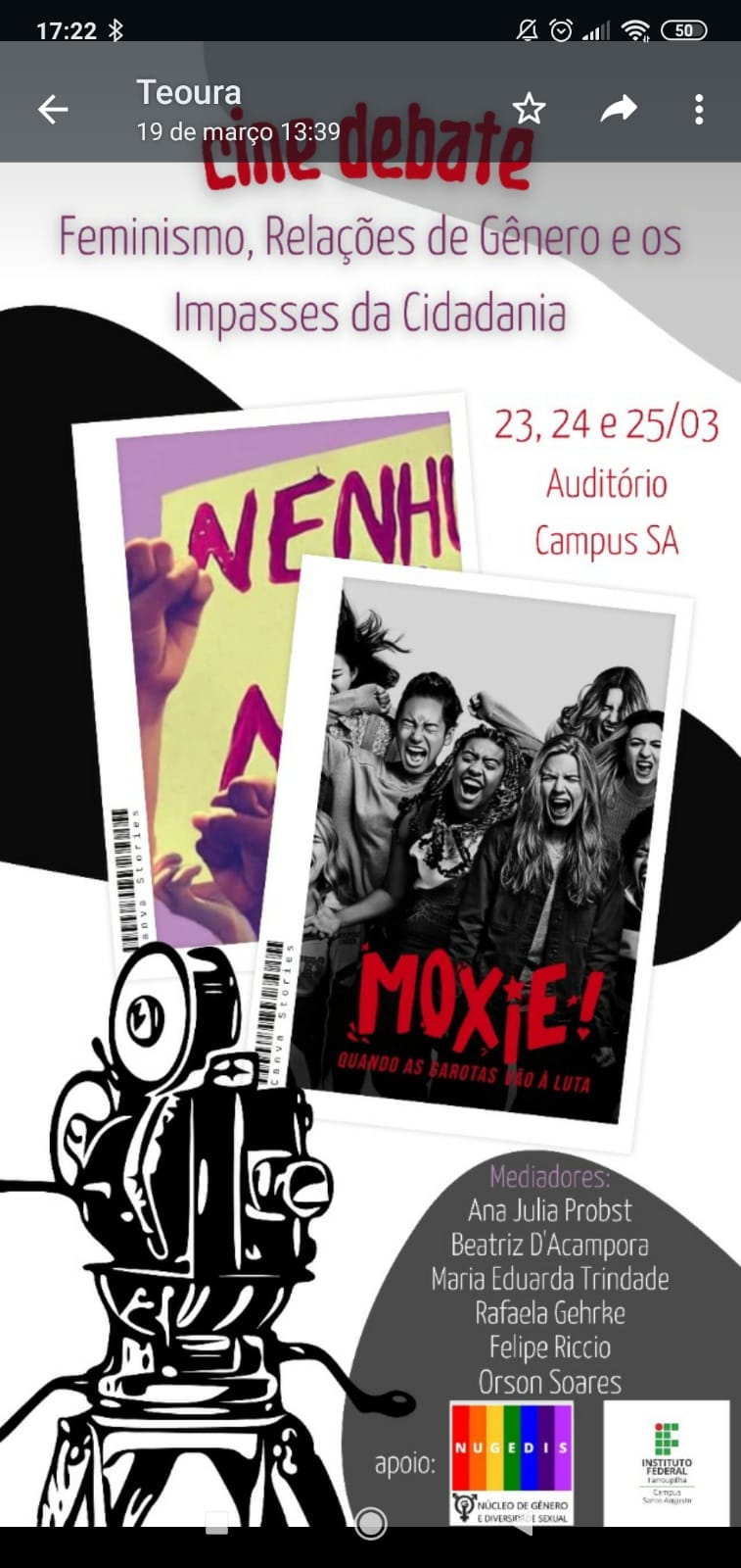 IFFar – Campus Santo Augusto promove Cine Debate sobre feminismo e desigualdade de gênero