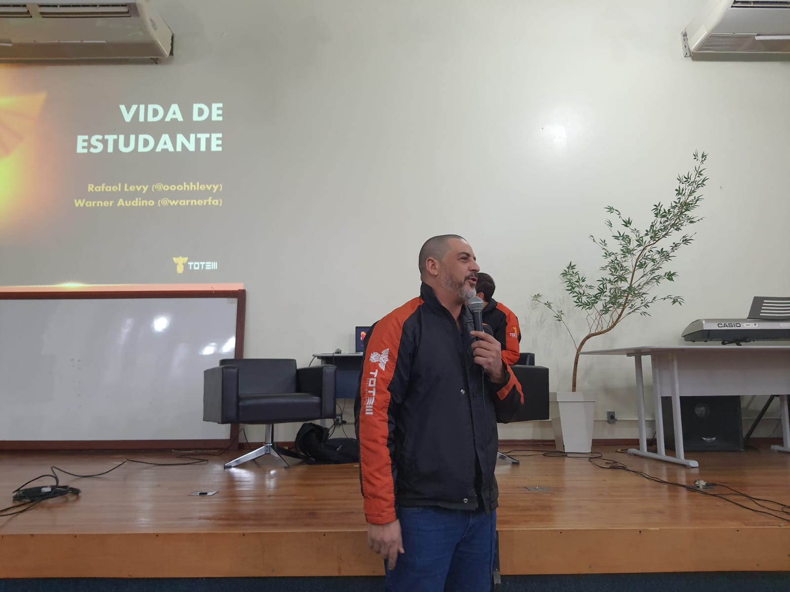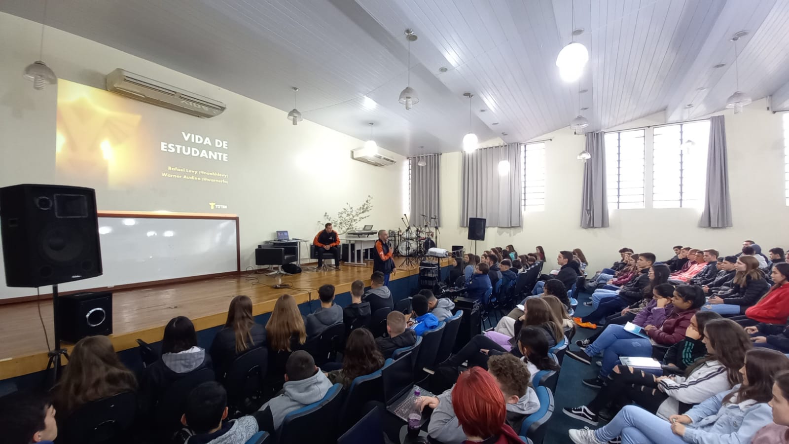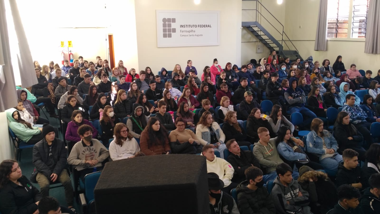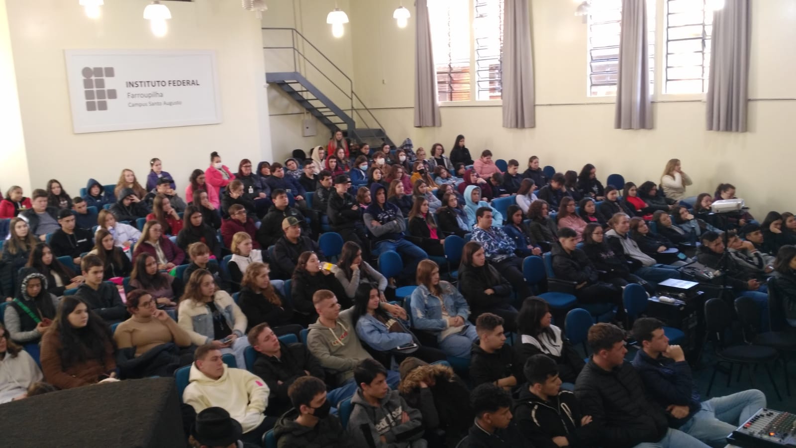 Os estudantes dos cursos técnicos integrados ao ensino médio do IFFar – Campus Santo Augusto participaram na manhã de hoje, 12 de maio, de palestra com o tema Vida de Estudante, ministrada pelos Sócios Diretores do Totem Vestibulares, Rafael Levy (formação em Matemática e Pedagogia) e Warner Audino Fagundes (formação em Biologia). A atividade foi pensada pelo Núcleo de Saúde Mental da instituição em conjunto com a Coordenação de Assistência Estudantil - CAE.